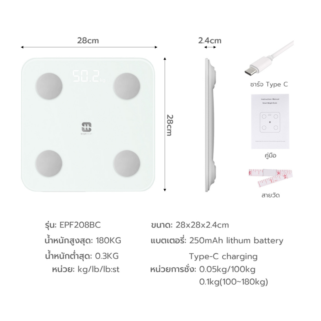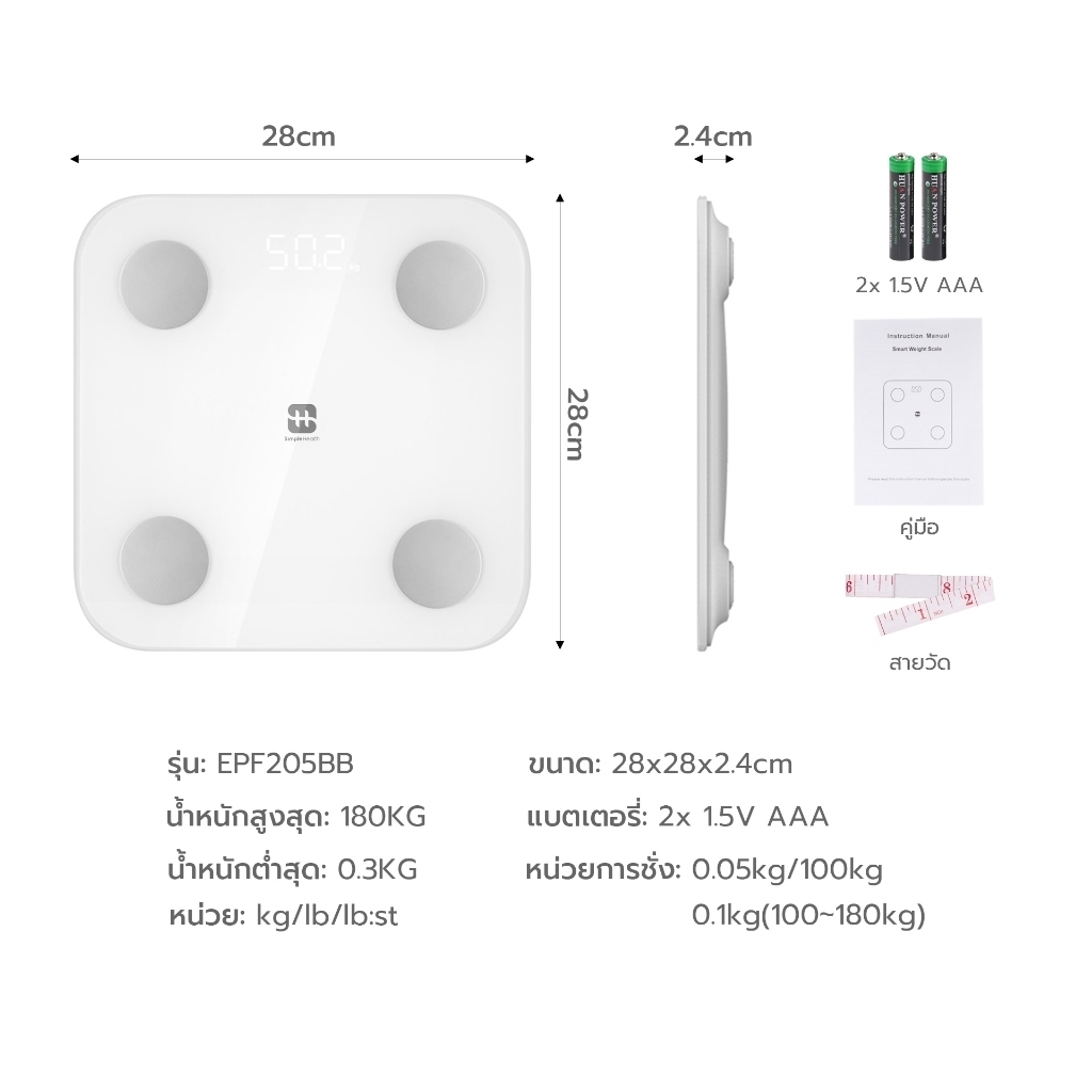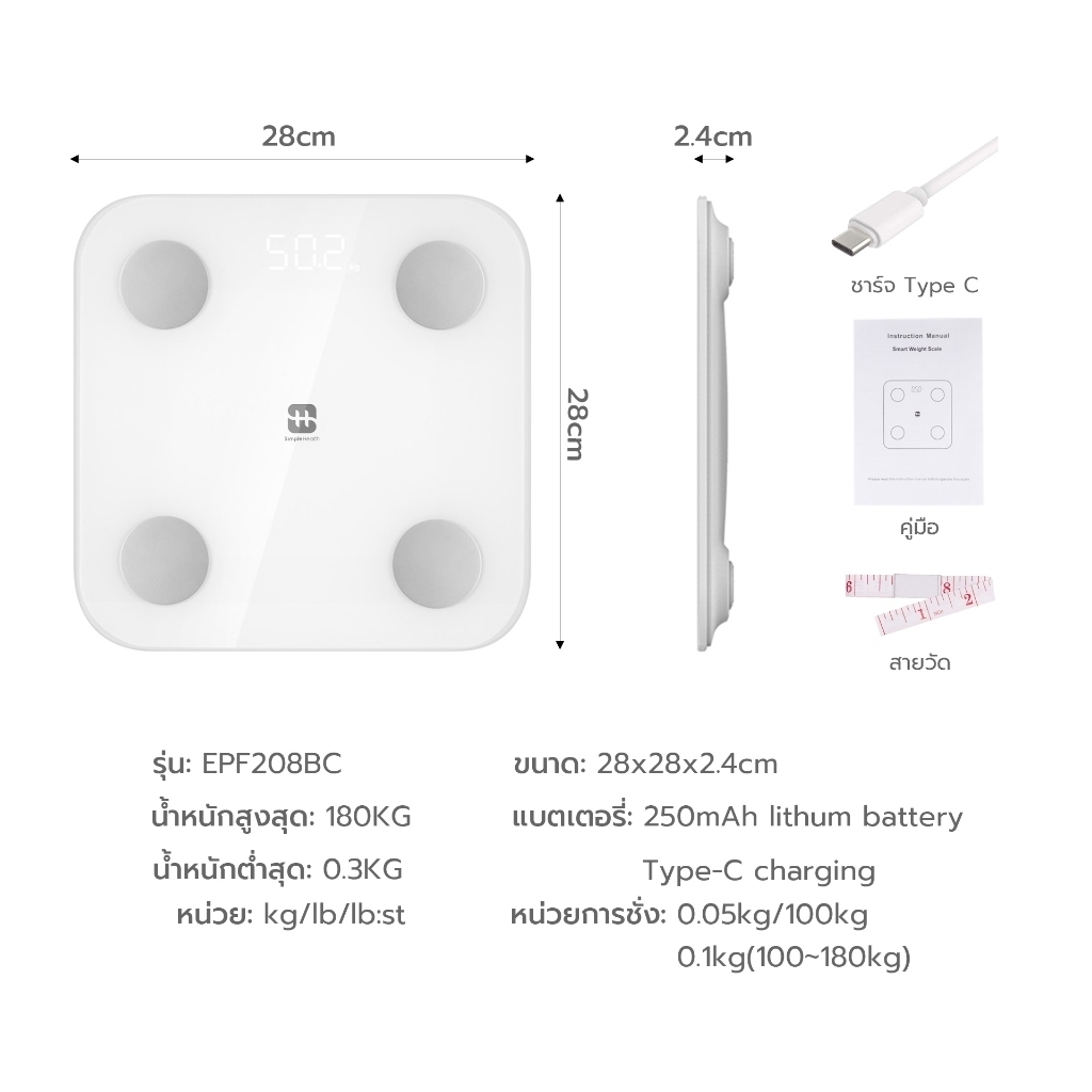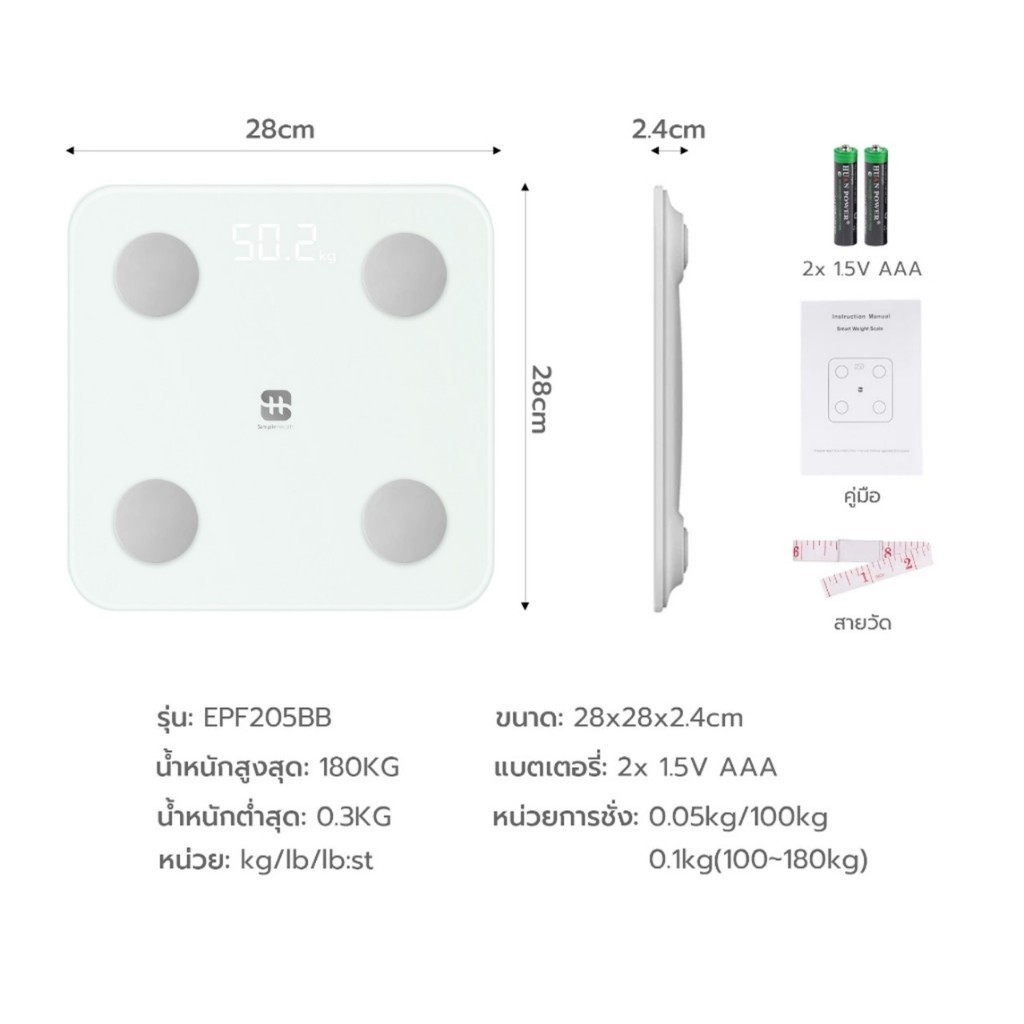 Simple health TH เครื่องชั่งน้ำหนักอัจฉริยะ เครื่องชั่งน้ำหนัก Smart Weight Scale ประกัน 1 ปี