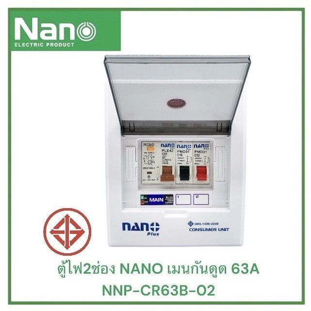 NANO Plus ตู้คอนซูมเมอร์ 2ช่อง เมนธรรมดาMCB/กันดูดRCBO กันไฟดูดไฟช็อตไฟเกิน ตู้ไฟ เมนกันดูด