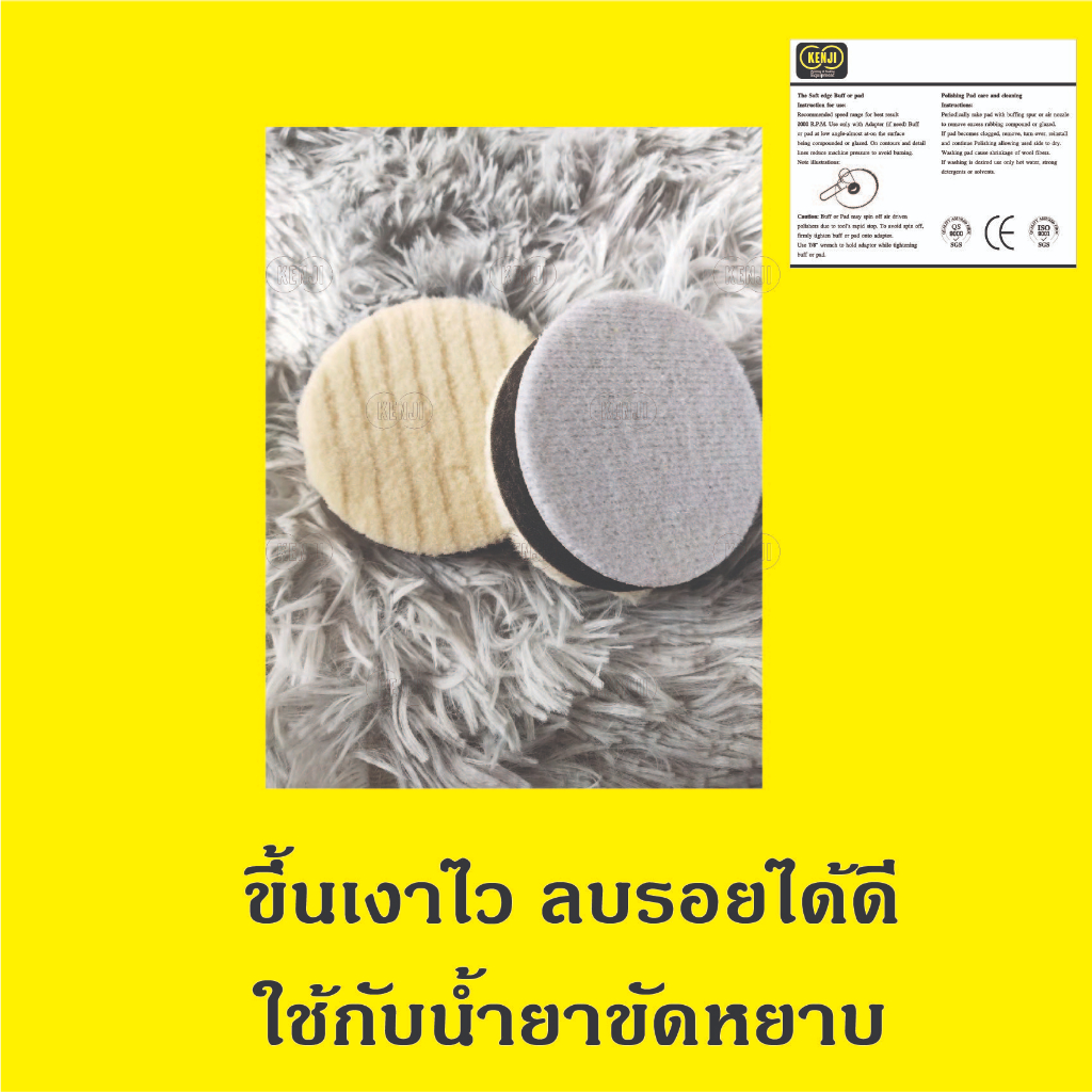 ขนแกะขัดเงา แบบขนสั้น แบบมีฟองน้ำ ขนาด 3 / 5 / 6 / 8 นิ้ว ความหนา 10 มิล