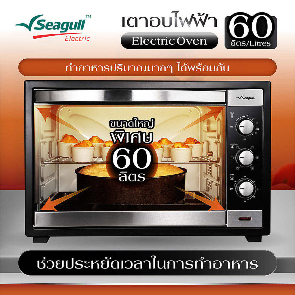 Seagull เตาอบไฟฟ้า 60 ลิตร (สีดำ) Electric Oven เตาอบเบอเกอรี่ เตาอบขนม เตาอบลมร้อน เตาอบพิซซ่า