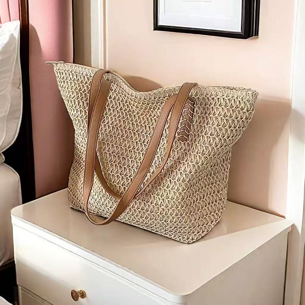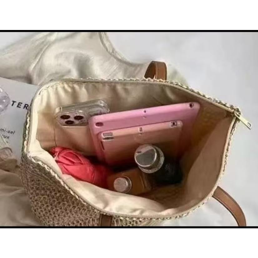 (A209) กระเป๋าสะพายข้าง ทอมือ งานสาน สายหนัง