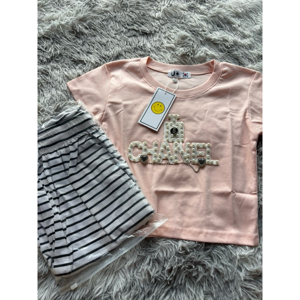 เซ็ตป้ายยูกางเกงลายริ้วสีขาว