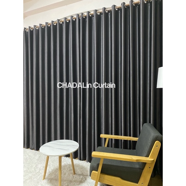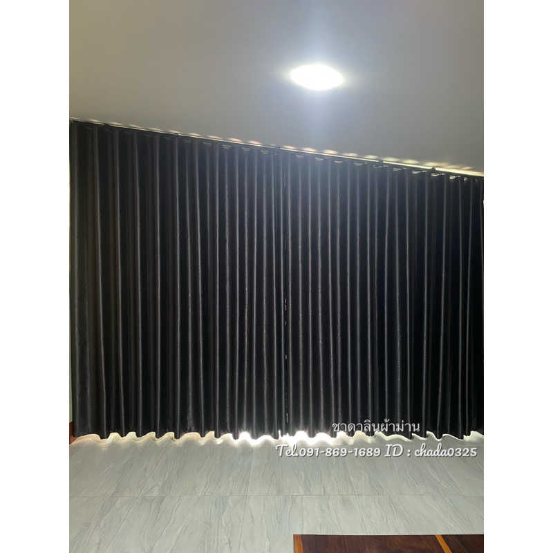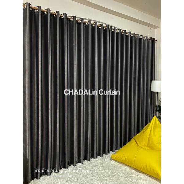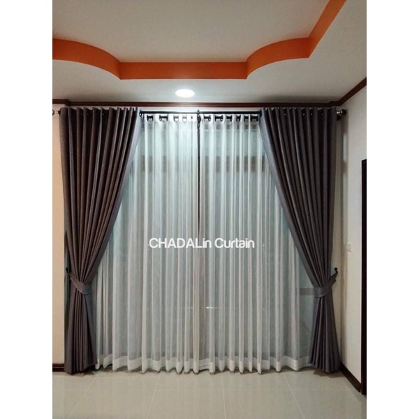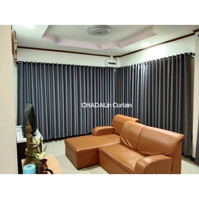 ม่านประตู สีเทา ผ้าเงากันแสง 90-95% เนื้อนิ่มหนา ทิ้งตัว (ฟรี!โซ่ถ่วงน้ำหนัก)
