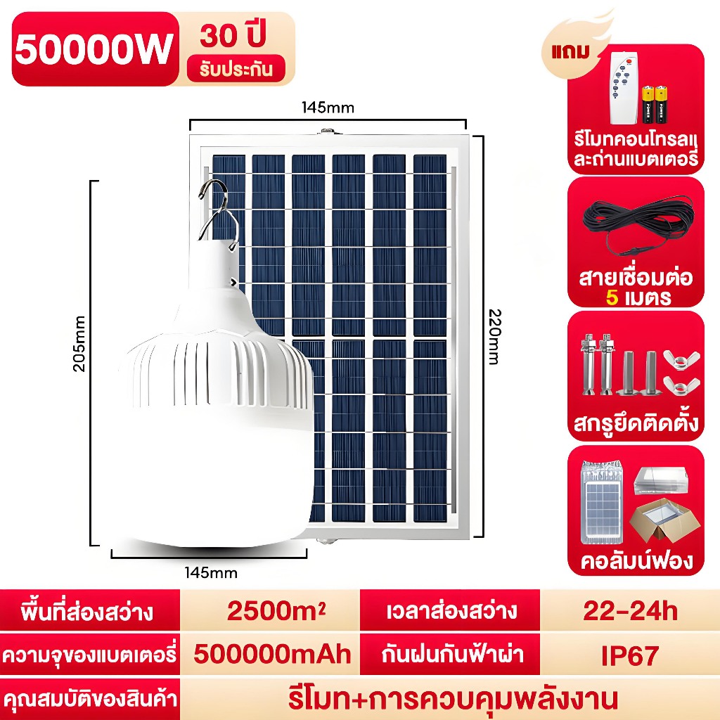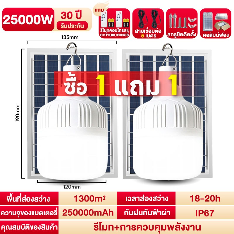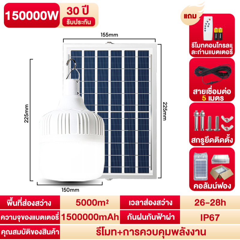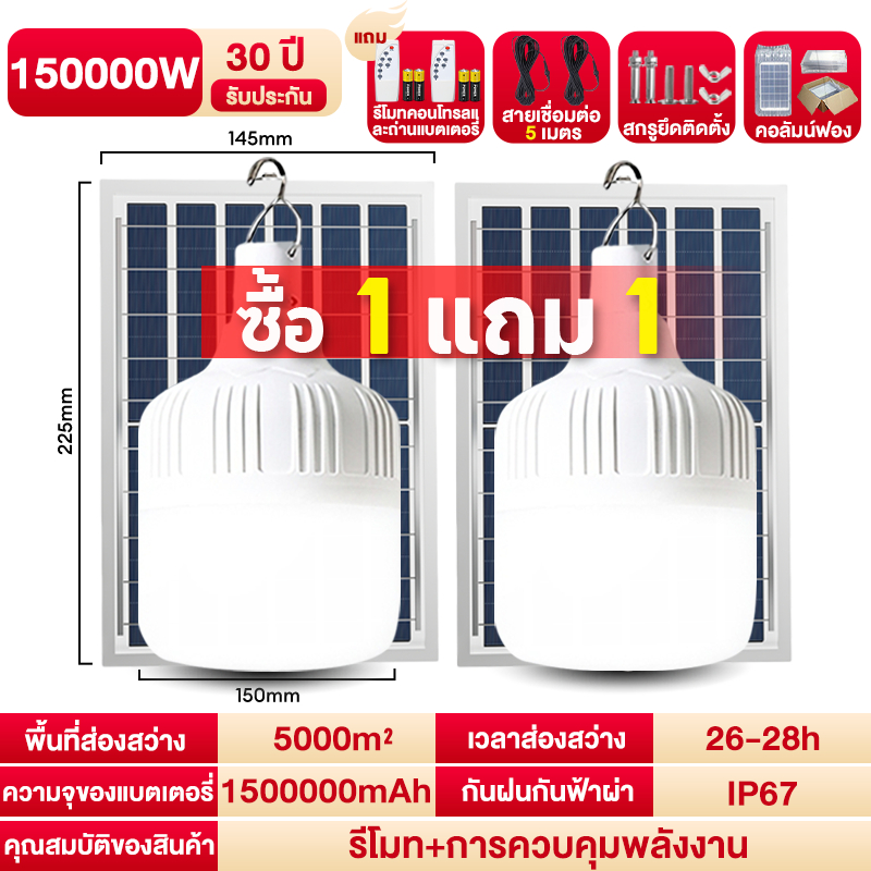 CHKAN【ซื้อ1แถม1】ไฟโซล่าเซลล์ โซล่าเซลล์ 150000W หลอดไฟ Solar Light LED ไลท์แสงสีขาวกันน้ำ 0ค่าไฟฟ้า ชาร์จไฟอัต โนม