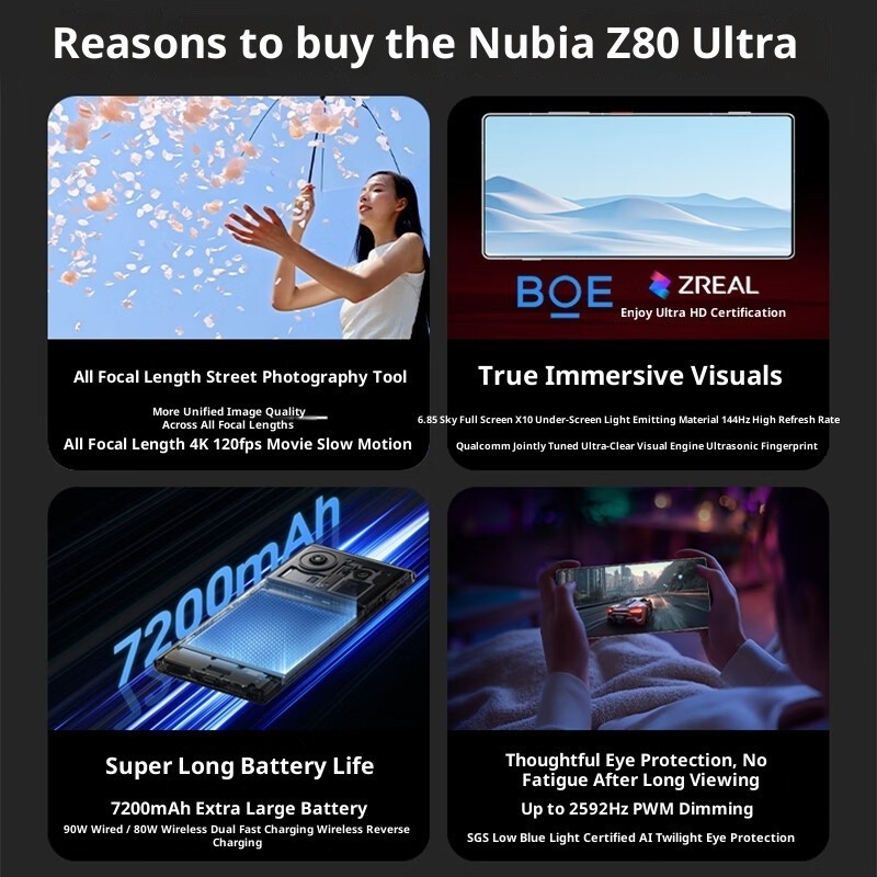 ROM Global Nubia Z80 Ultra Snapdragon 8 Elite Gen 5 6.85 inch AMOLED 144HZ 7200mAh Battery 90W
