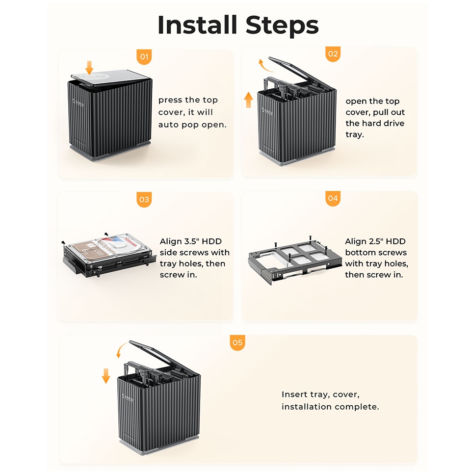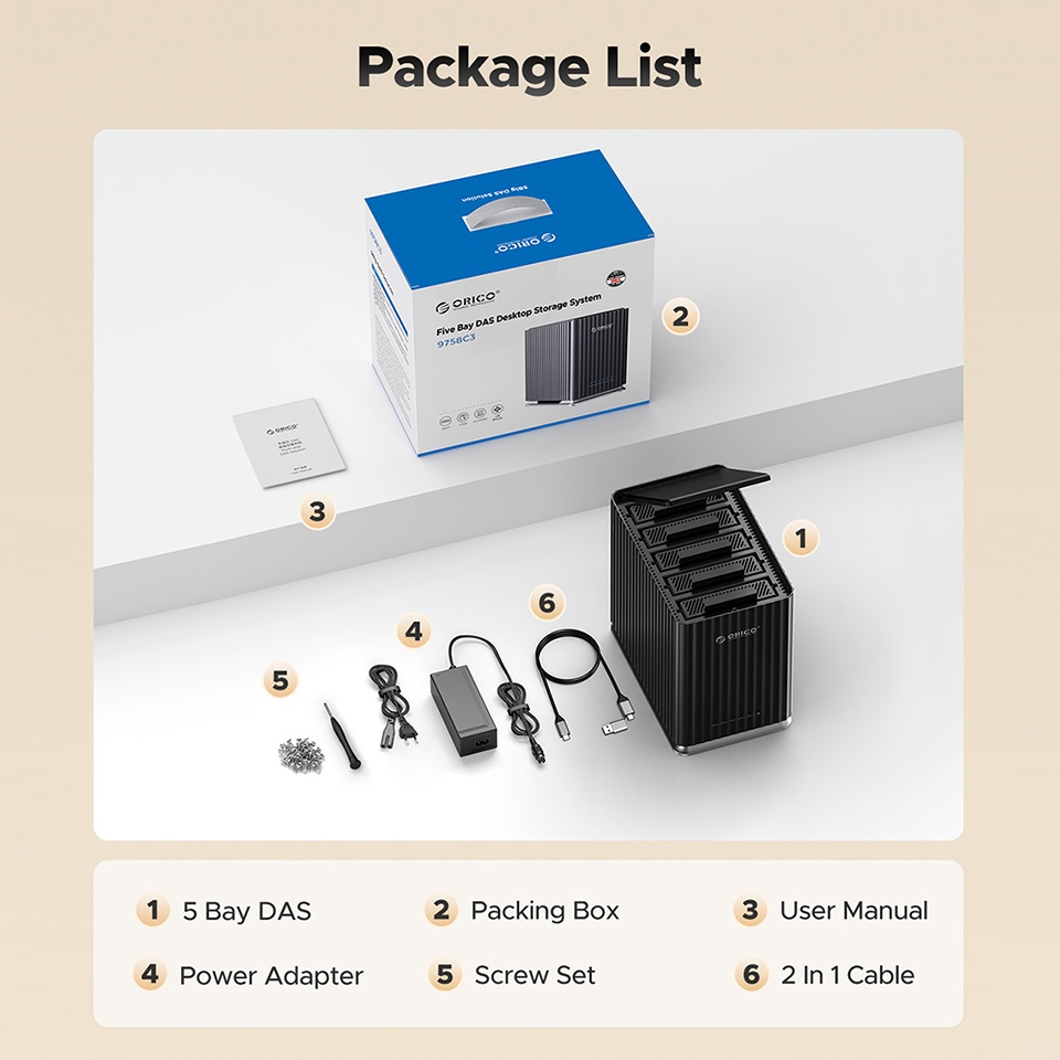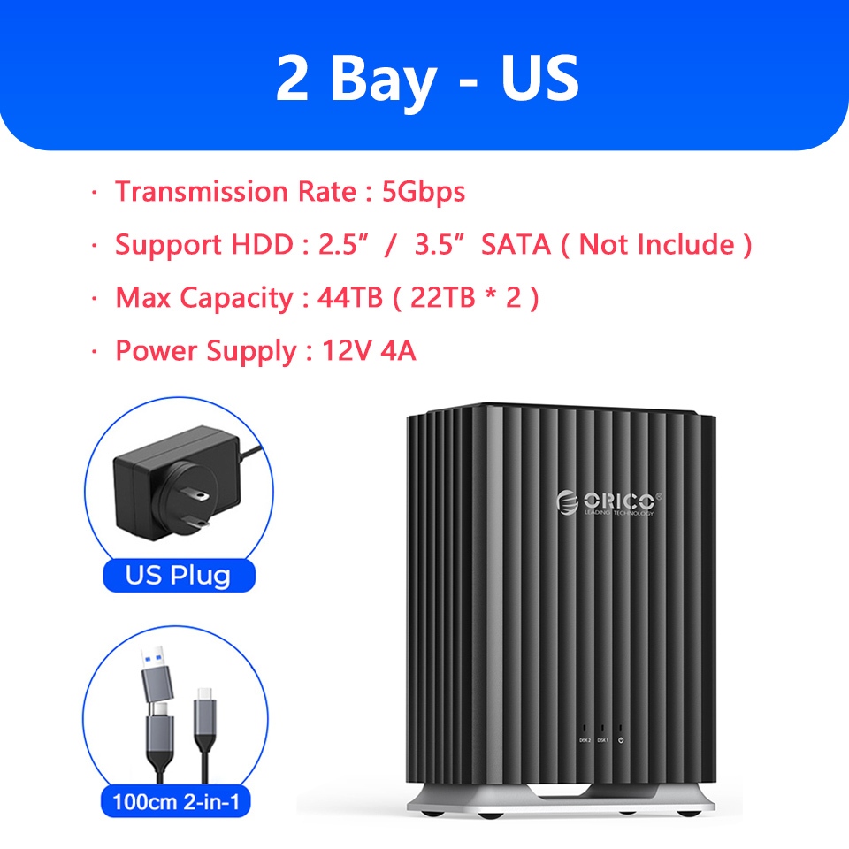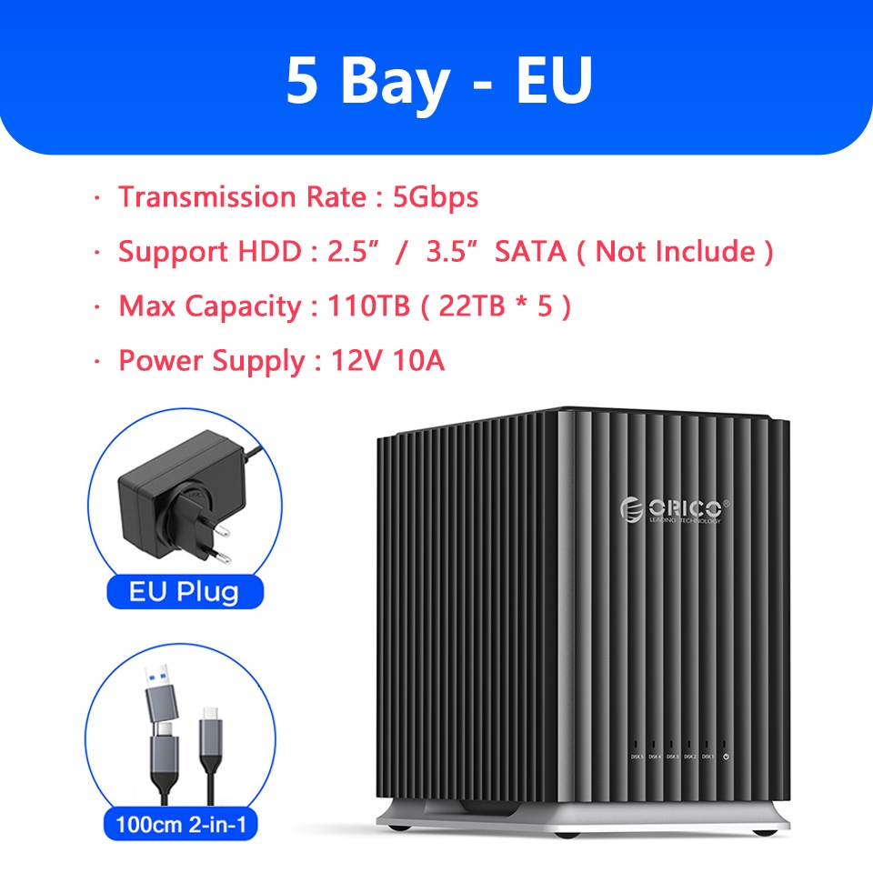 100% Original ORICO 2/5 Bay HDD Docking Station 2.5/3.5 นิ้ว SATA Hard Drive House ภายนอก HD SSD Case Enclosure USB 3.0 ประเภท C 2Bay 5Bay DAS Extension Storage