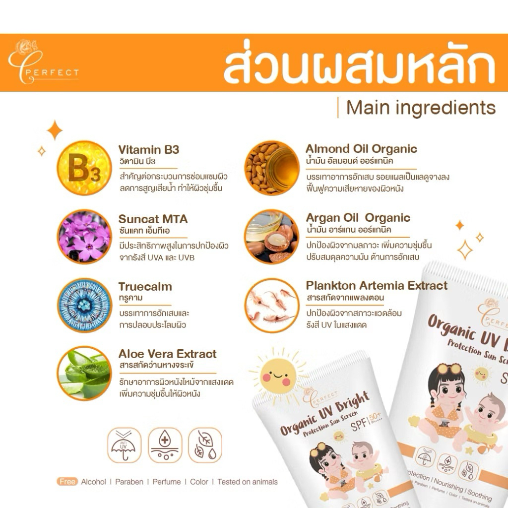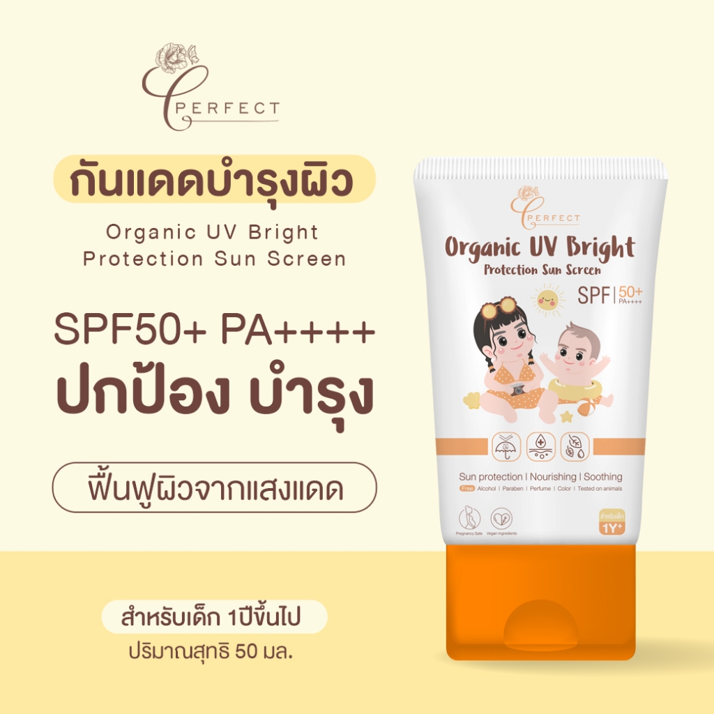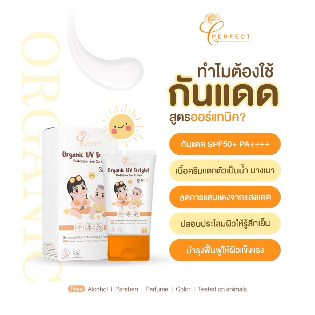 Perfect กันแดดเด็ก ออร์แกนิค บำรุงผิวใส ปลอบประโลมผิวเย็น ปกป้องแสงแดด เนื้อบางเบา แตกตัวเป็นน ้ำ ทาซ้ำได้ตลอดวัน
