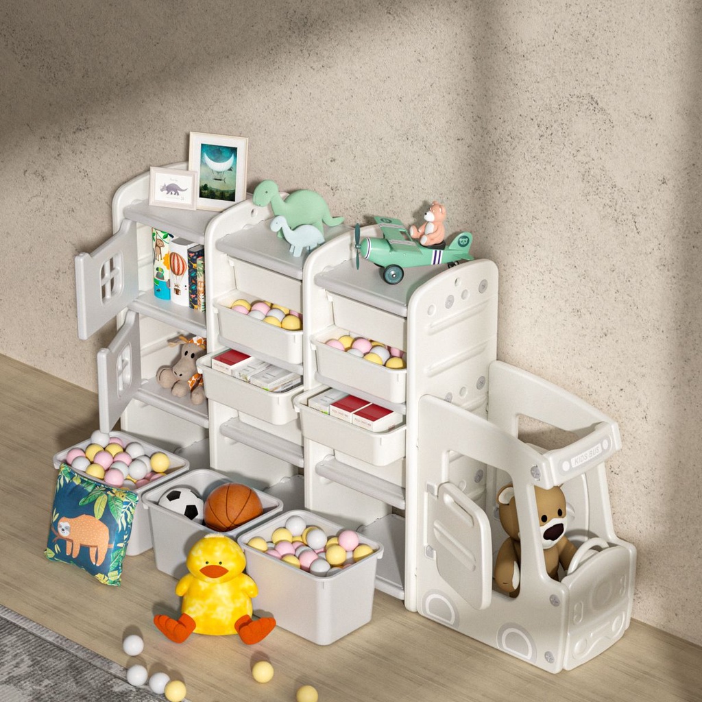 [พร้อมส่ง!] ชั้นวางของเด็ ก รถบัสสำหรับเด็กเล็ก นั่งได้! ชั้นวางหนังสือเด็ก คุณภาพดี ชั้นวางของเล่น