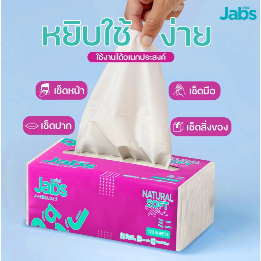 Jabs 1 ห่อ x 120 แผ่น เนเจอรัล ซอฟท์ มินิ กระดาษทิชชูเช็ดหน้า 2 ชั้น