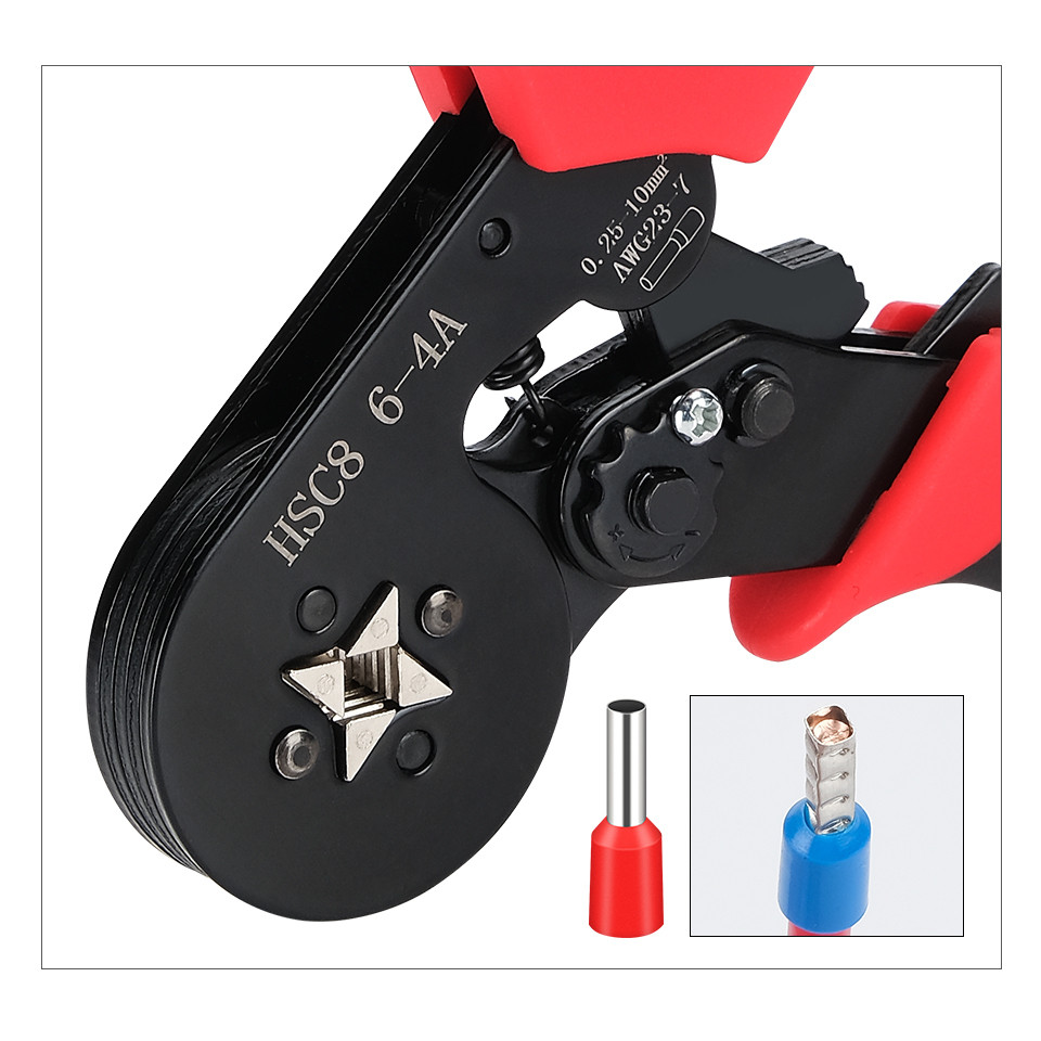คีมย้ำหางปลาและสายไฟ HSC8: ขนาด 6-4A พร้อมหัวย้ำ 0.25-10mm² และหางปลาคอร์ดเอ็น 1200 ชิ้น ใช้งานได้หลากหลาย