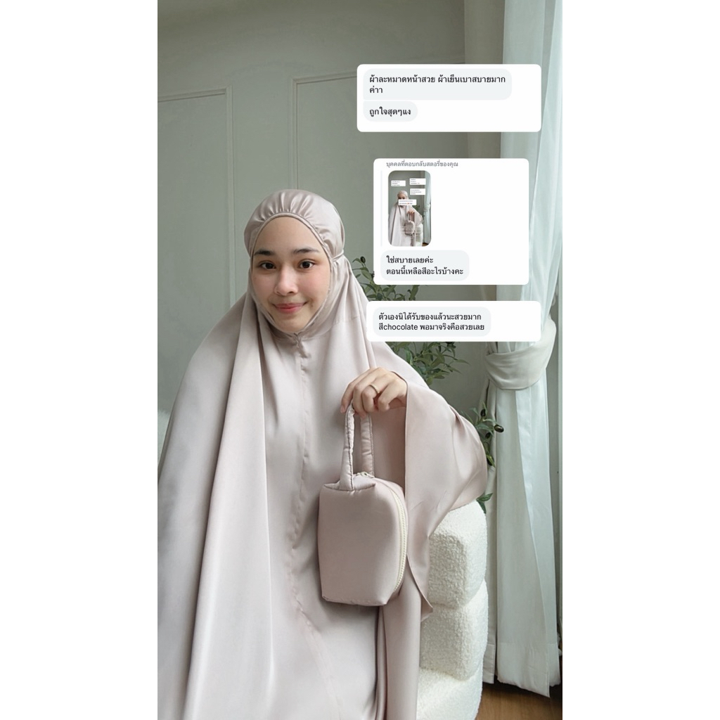 ตะละกงผ้าซิลค์ ชุดละหมาดผ้าติดแอร์ shop story | Armani prayer dress : Premium silk satin ผ้านำเข้า ใส่สบาย