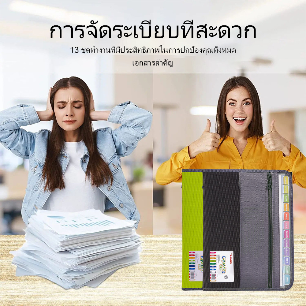 โฟลเดอร์ขยาย 13 ชั้น ข้อมูลจำเพาะ A4 ช่อง การออกแบบซิปคู่ จัดเอกสารสำนักงาน และสรุปข้อมูลนักเรียน