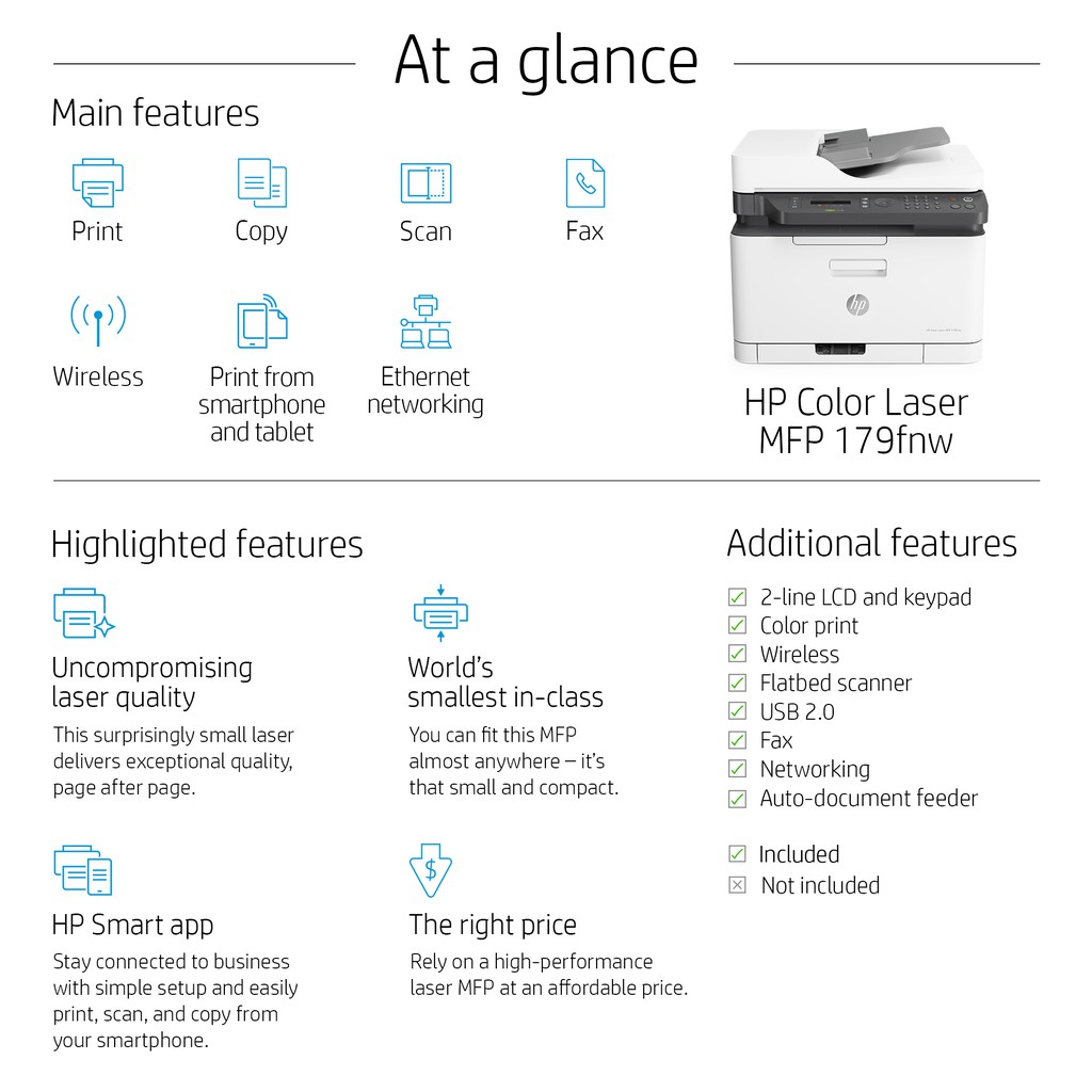 เครื่องพิมพ์เลเซอร์ HP Color Laser MFP 179fnw มีหมึกพร้อมใช้งาน ประกันศูนย์ 3 ปี ซ่อมฟรีถึงบ้าน HP by Earthshop