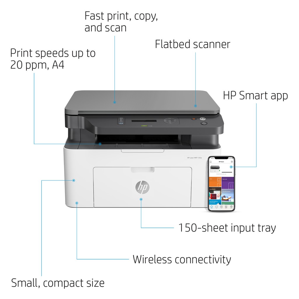 เครื่องพิมพ์เลเซอร์ HP Laser MFP 135w มีหมึกพร้อมใช้งาน ประกันศูนย์ 3 ปี ซ่อมฟรีถึง Hp by Earthshop