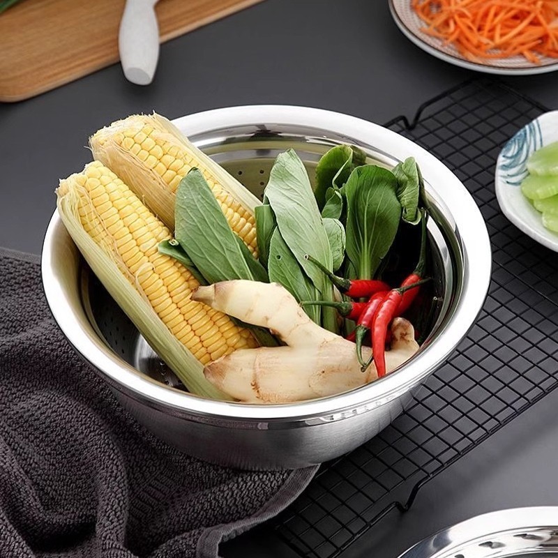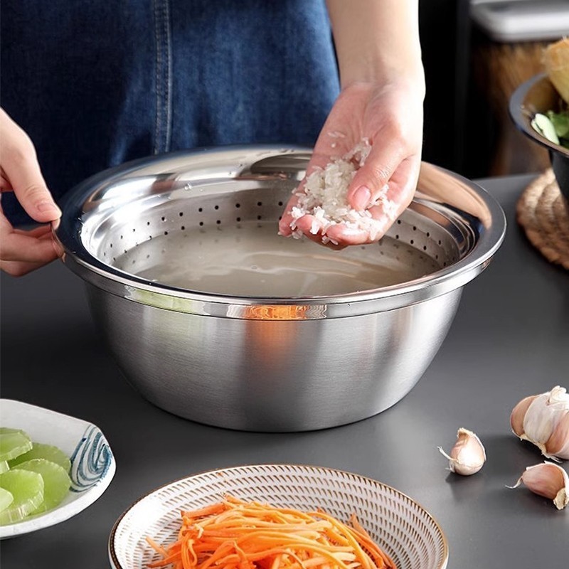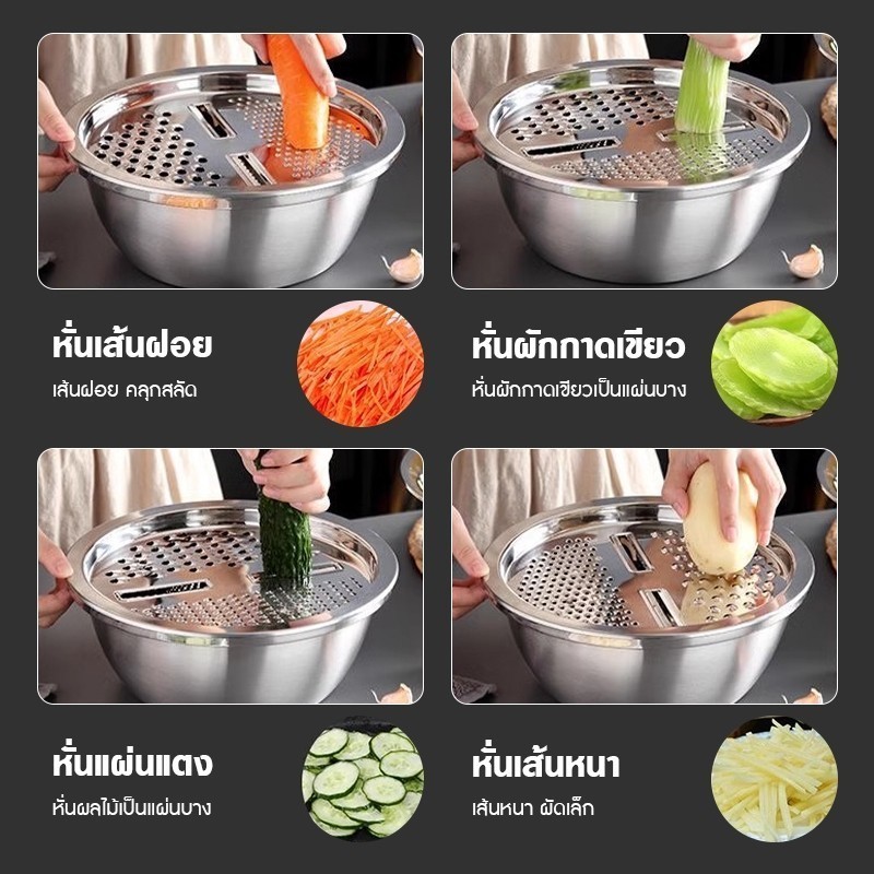 LWR กะละมังล้างผัก ชุด3in1 สแตนเลส304 รูระบายน้ำ ถาดขูดเส้น/สไลด์ผัก/นวดแป้ง