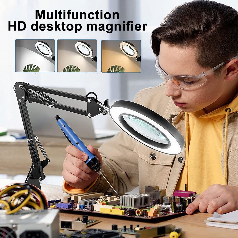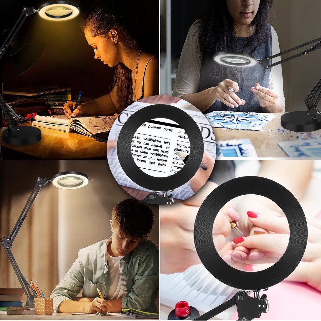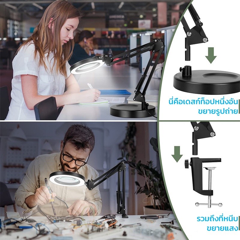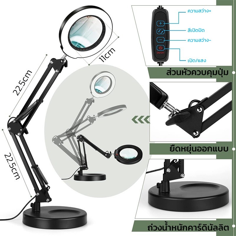 โคมไฟแว่นขยาย พับได้ แว่นขยายตั้งโต๊ะ8xมีไฟ LED3โหมด แหล่งจ่ายไฟUSBแว่นขยาย โคมไฟตั้งโต๊ะสักคิ้วแต่งเล็บงาม พร้อมฐานและค