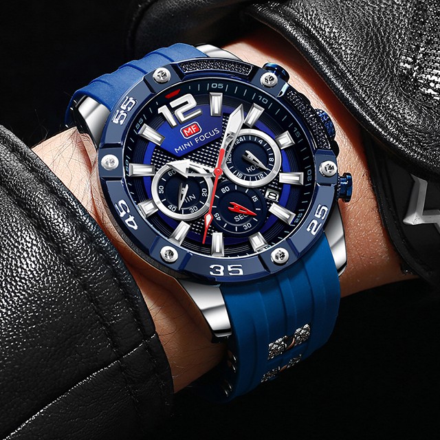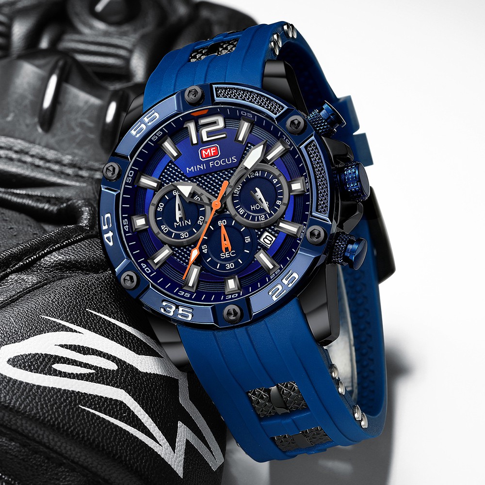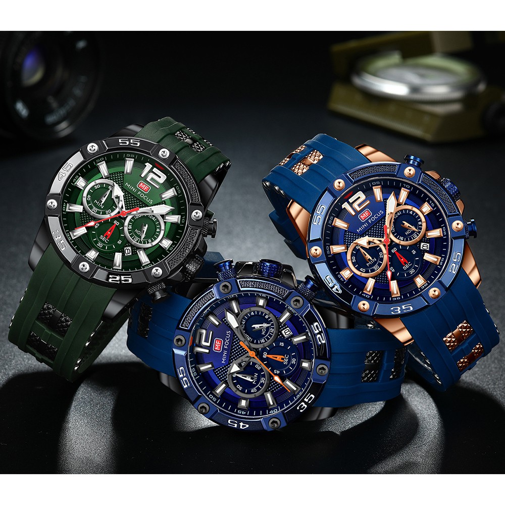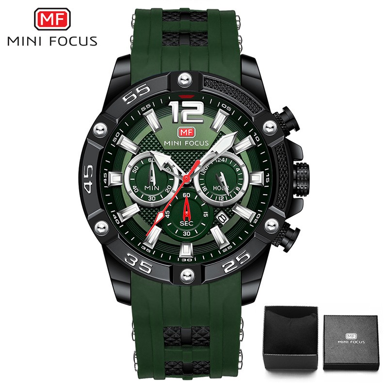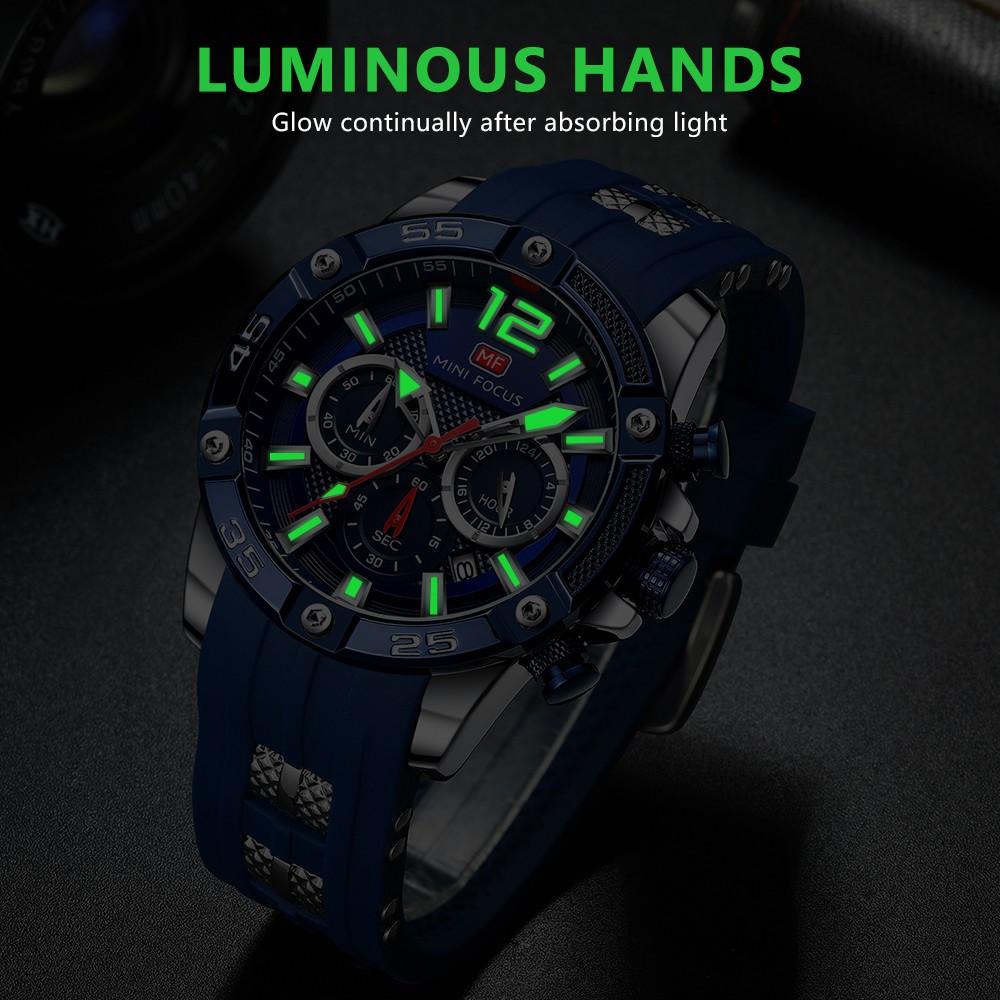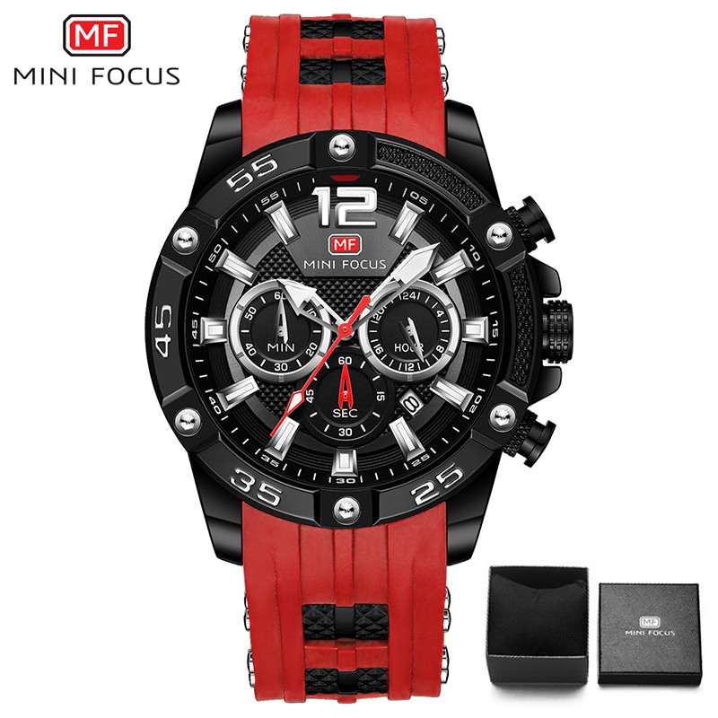 MINIFOCUS นาฬิกามัลติฟังก์ชั่นกีฬาผู้ชายนาฬิกานาฬิกาควอทซ์กันน้ำแฟชั่นเข็มขัดซิลิโคนนาฬิกาสำหรับผู้ชาย
