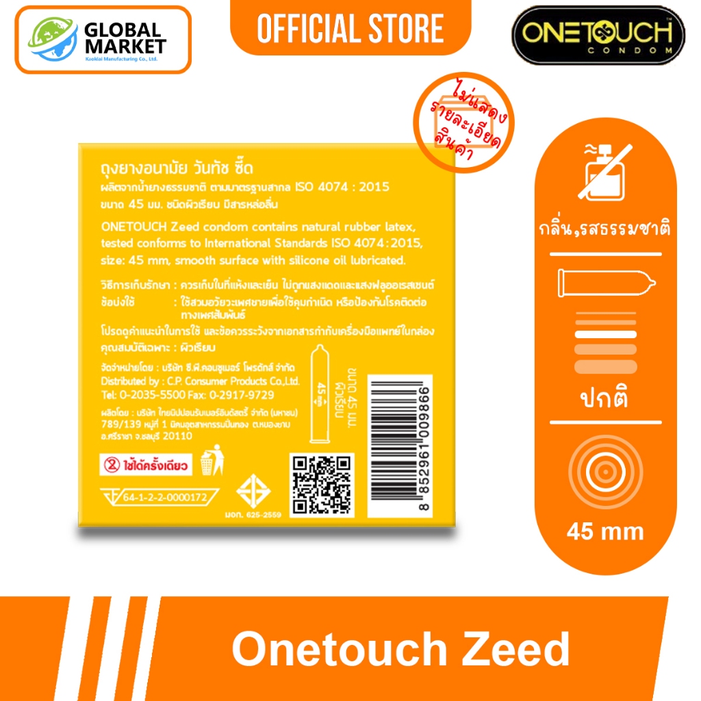 Onetouch Zeed Condom กล่องเล็ก 3 ชิ้น ถุงยางอนามัย วันทัช ซี้ด ผิวเรียบ กระชับ ขนาด 45 มม.