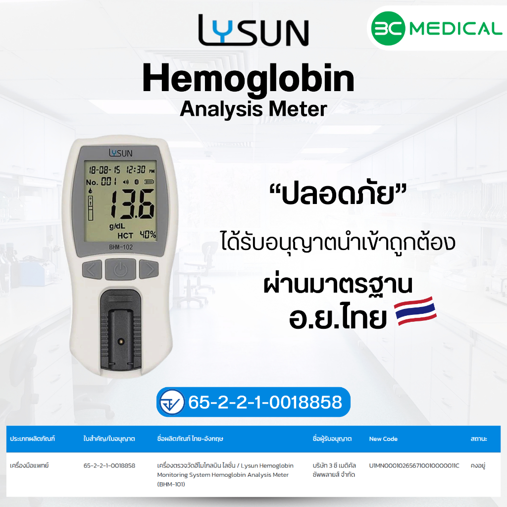 (เฉพาะเครื่อง)Lysun เครื่องตรวจวัดฮีโมโกลบิน รุ่น BHM-102 (เฉพาะผู้ประกอบวิชาชีพทางการแพทย์และสาธารณสุข)