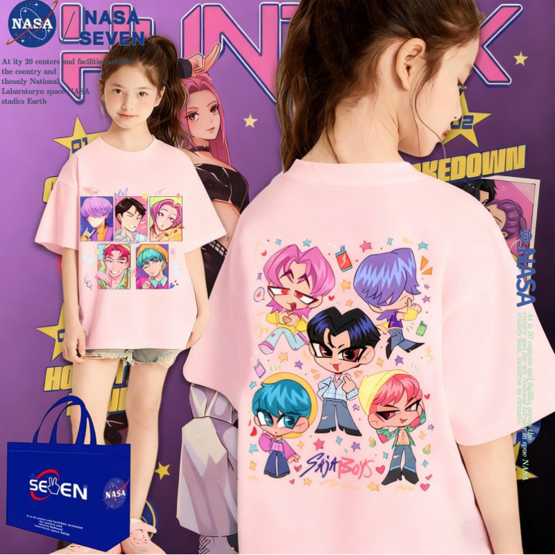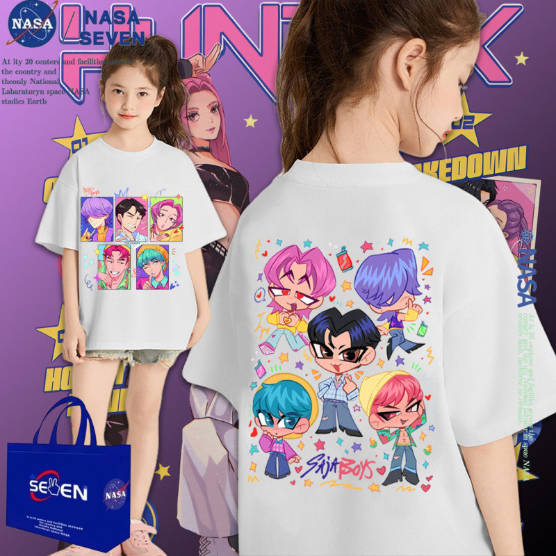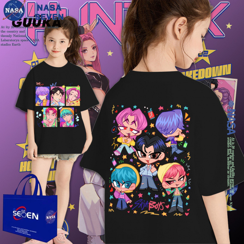 เสื้อยืดผ้าฝ้ายธีมการ์ตูนเคป๊อป นักล่าปีศาจสำหรับชาย สไตล์ทันสมัยสำหรับครอบครัว