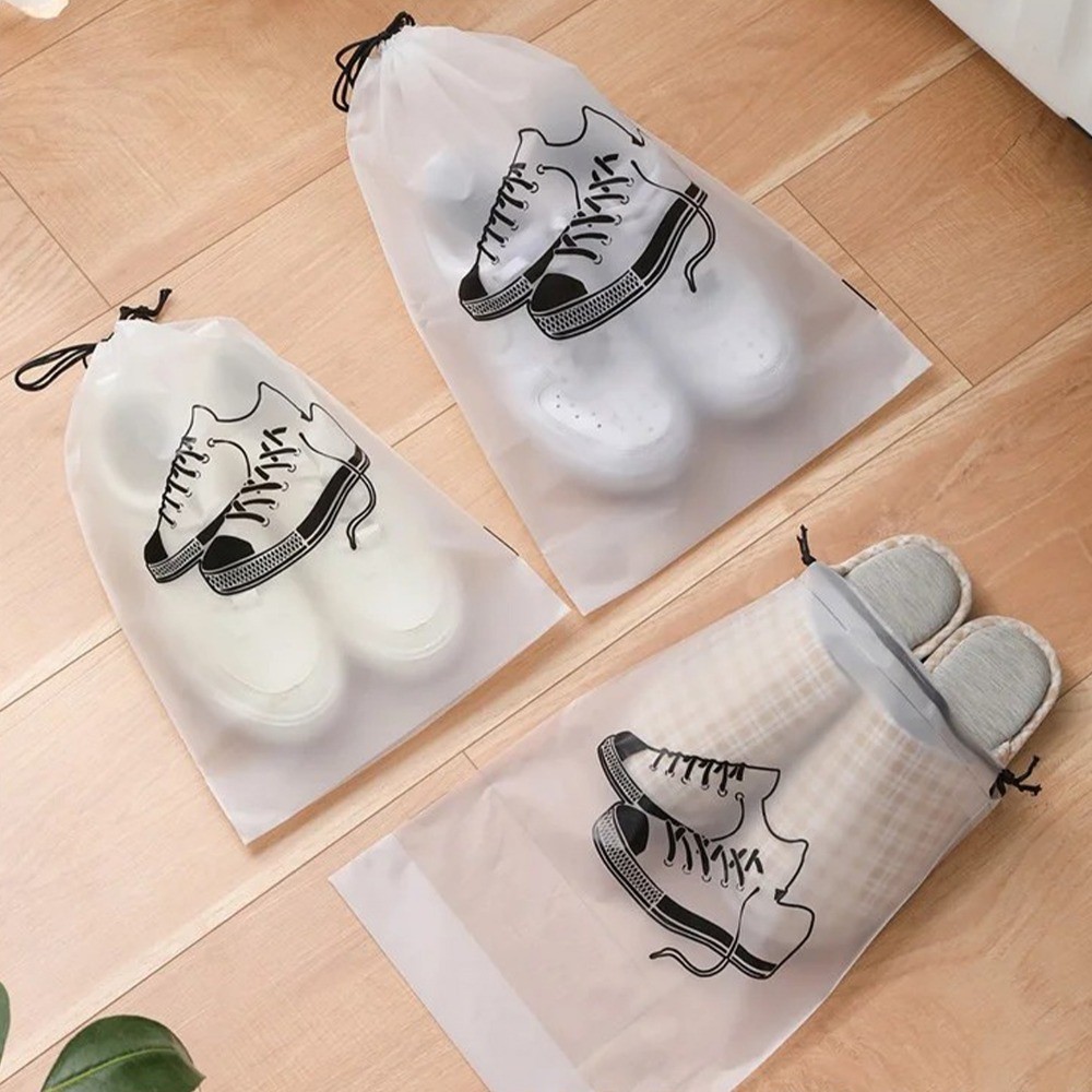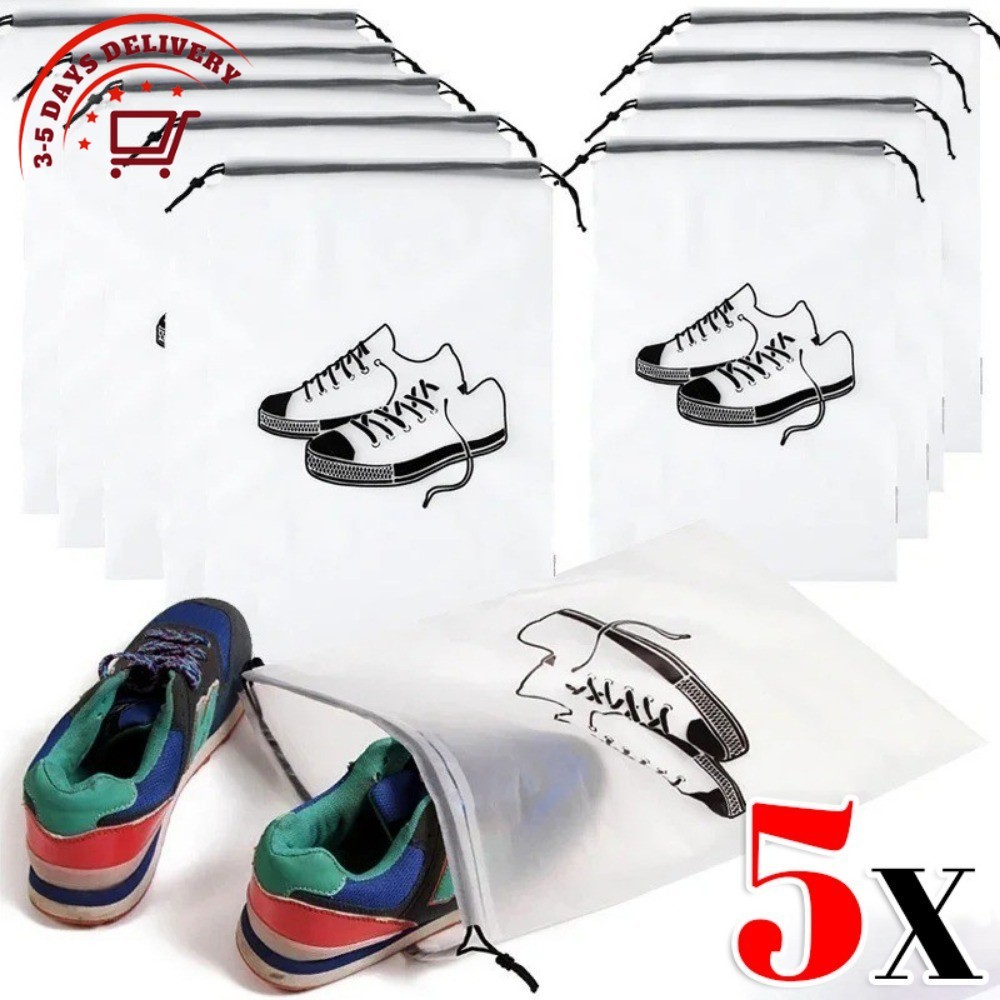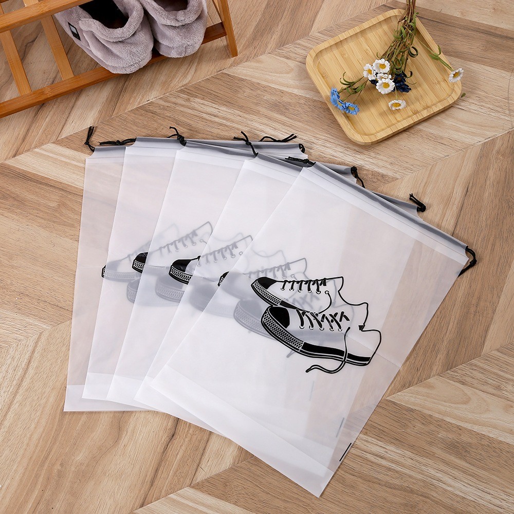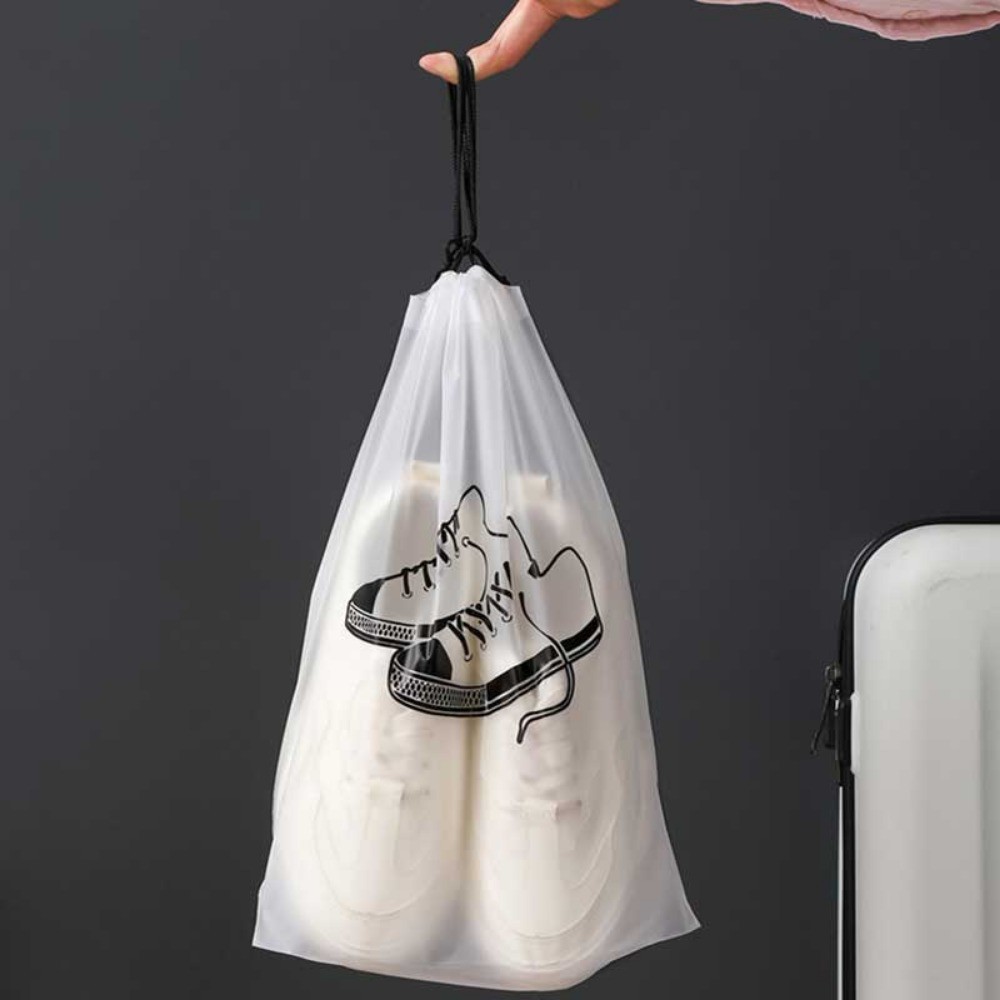 [3-5 วันมาถึง]1/3/5PCS ถุงเก็บรองเท้า Frosted Design,โปร่งใส PE วัสดุ Drawstring Closet Organizer สําหรับการเดินทาง/บ้าน (กลาง/ใหญ่)