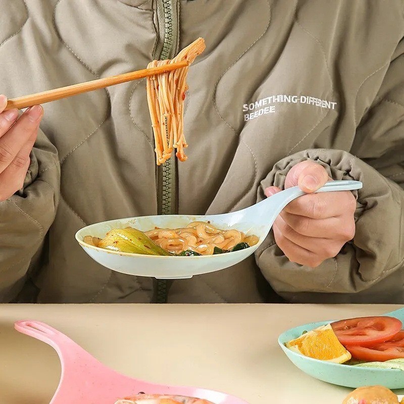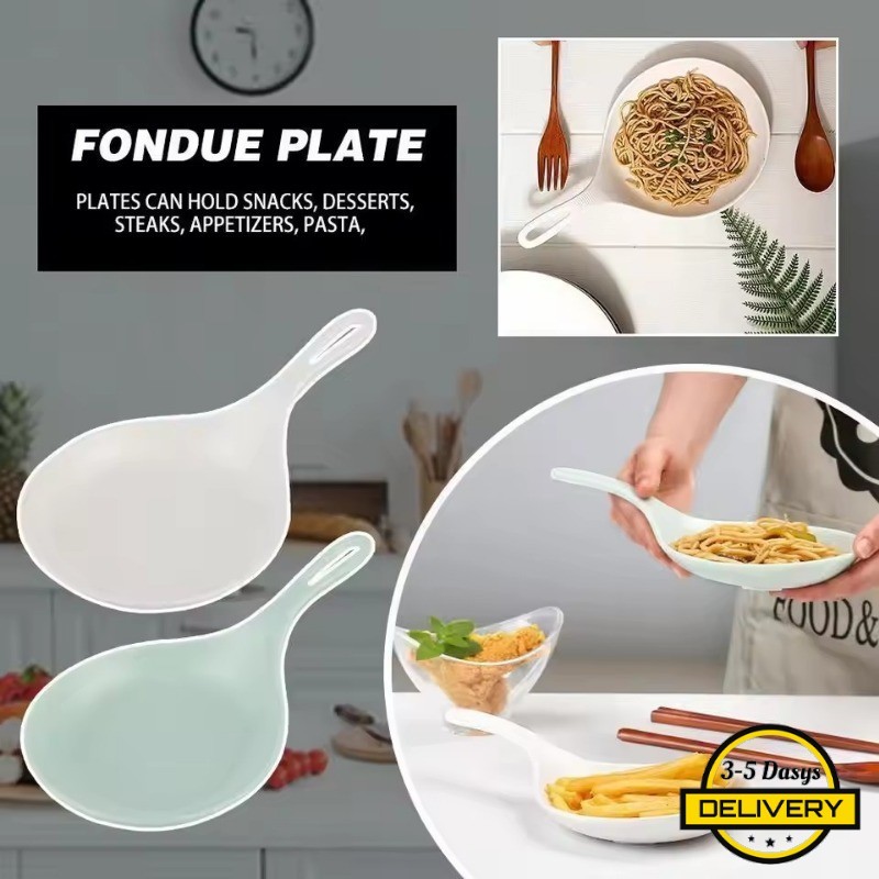 [3-5 วันมาถึง]3-15ชิ้นจานมือถือเกาหลี-สีขาวพร้อมที่จับถาดช้อนข นาดใหญ่-ทอดไก่ทอดจานขนมผลไม้ขนมเค้ก จาน
