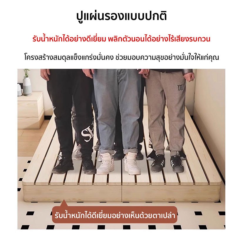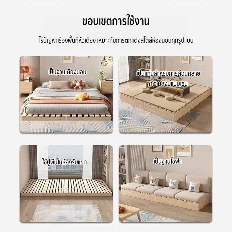 เตียงนอน เตียงไม้ โครงเตียงทาทามิพื้นแบบ การออกแบบไร้หัวเตียง 4ฟุต 5ฟุต 6ฟุต【ไม้จริง 100%】