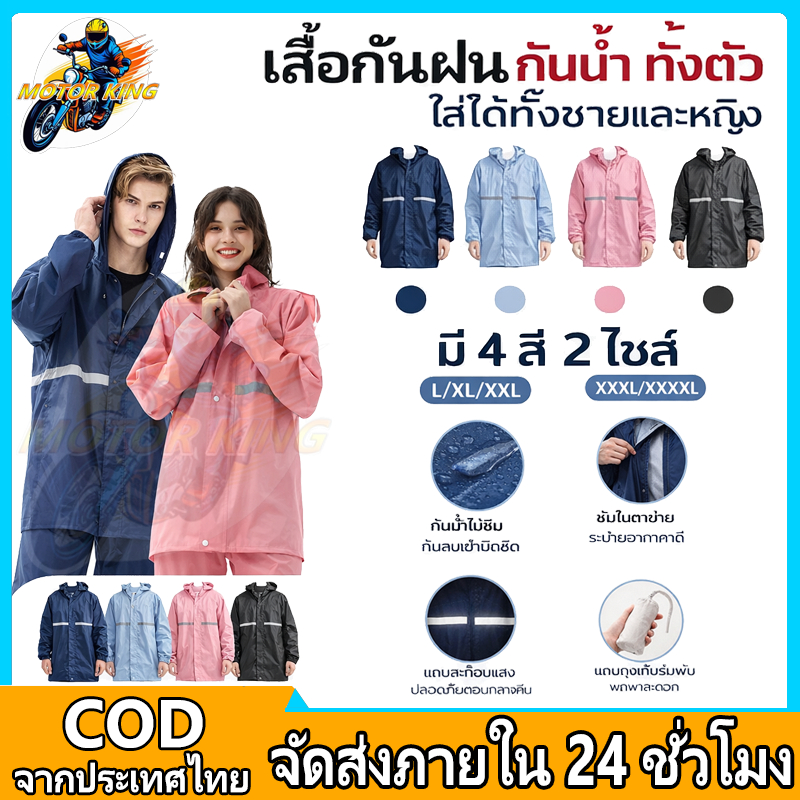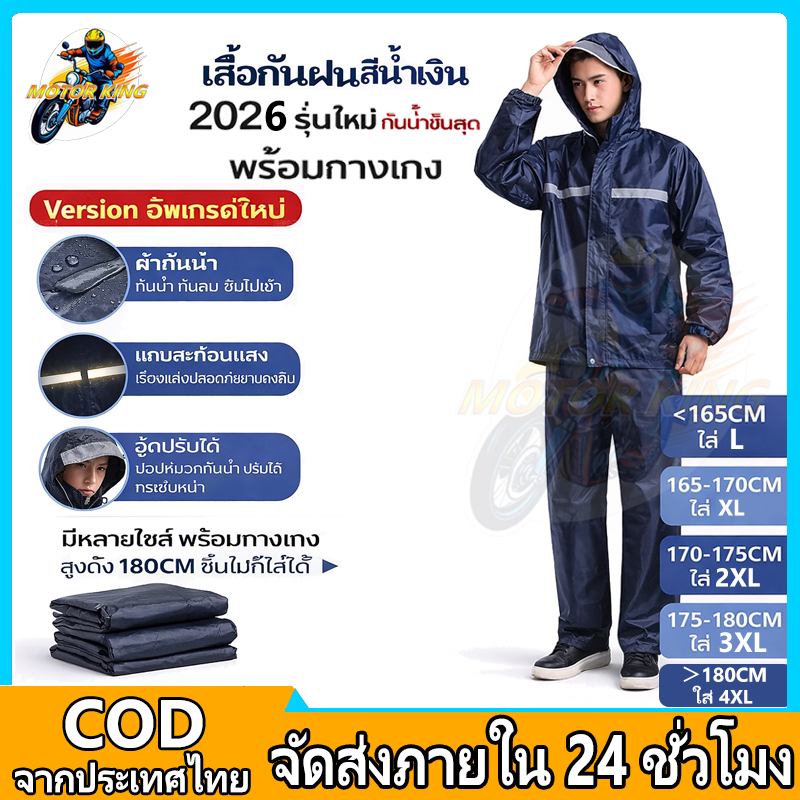ชุดกันฝน ชุดเสื้อและกางเกงกันฝน มีแถบสะท้อนแสง เสื้อกันฝน รุ่นหมวกติดเสื้อ เสื้อกันฝนมอเตอร์ไซค์ เสื้อกันฝนแบบพกพาผู้ใ หญ