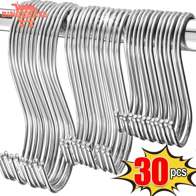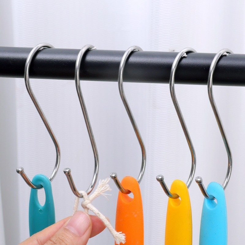 ตะขอรูปตัว S สแตนเลสอเนกประสงค์ - ไม้แขวนเสื้อแขวนผนังห้องน้ําในครัวสําหรับงานหนัก - กระเป๋าในครัวเรือน ที่เก็บเสื้อผ้า