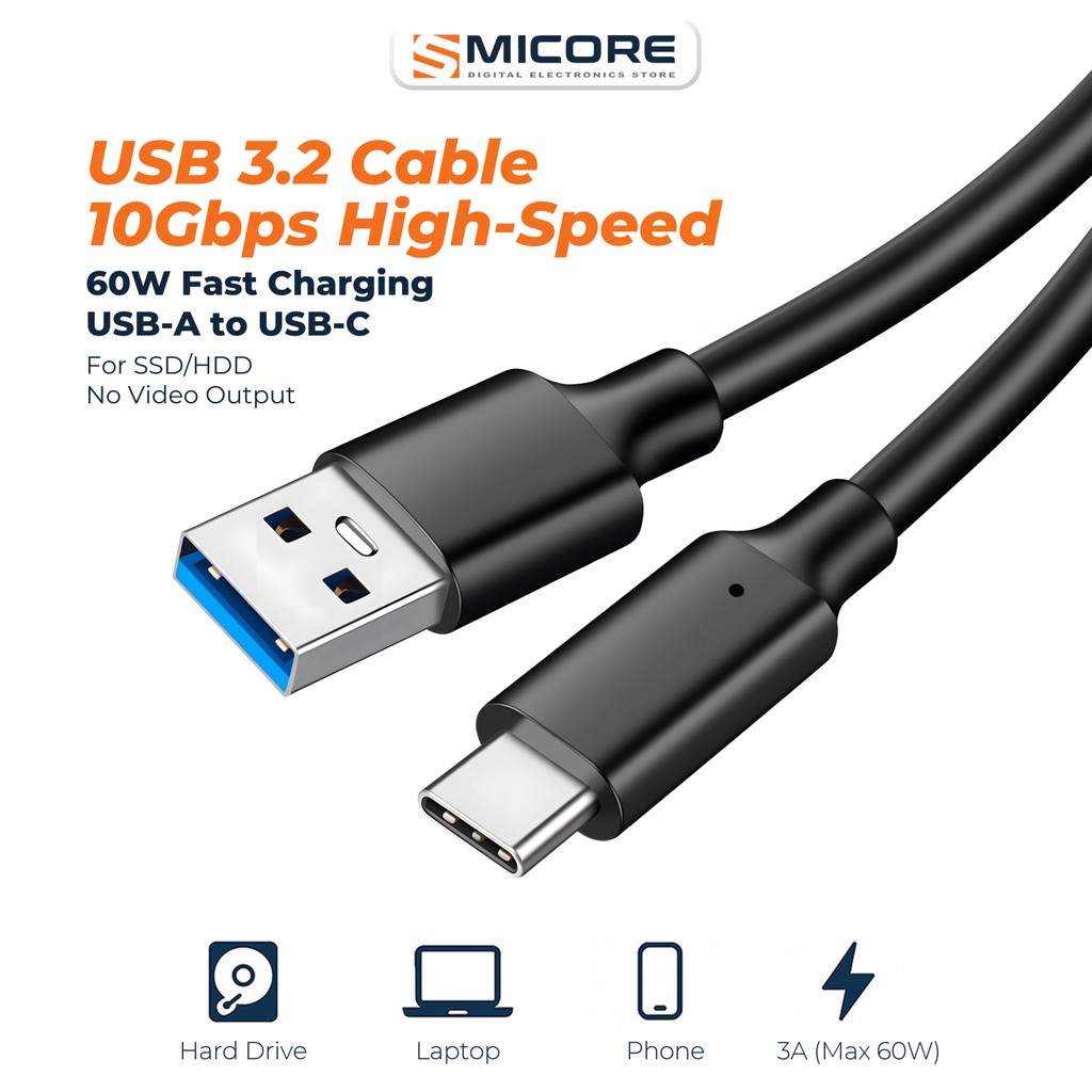 USB3.2 Gen2 Type-C Cable 60W ชาร์จเร็ว 10Gbps to USB-A สายข้อมูลความเร็วสูง ใช้กับ HDD/โน้ตบุ๊ก/โทรศัพท์