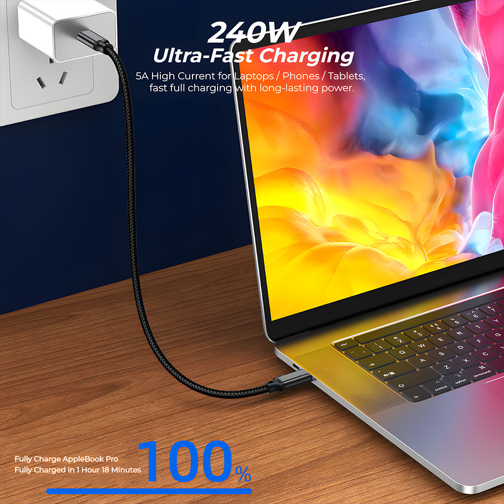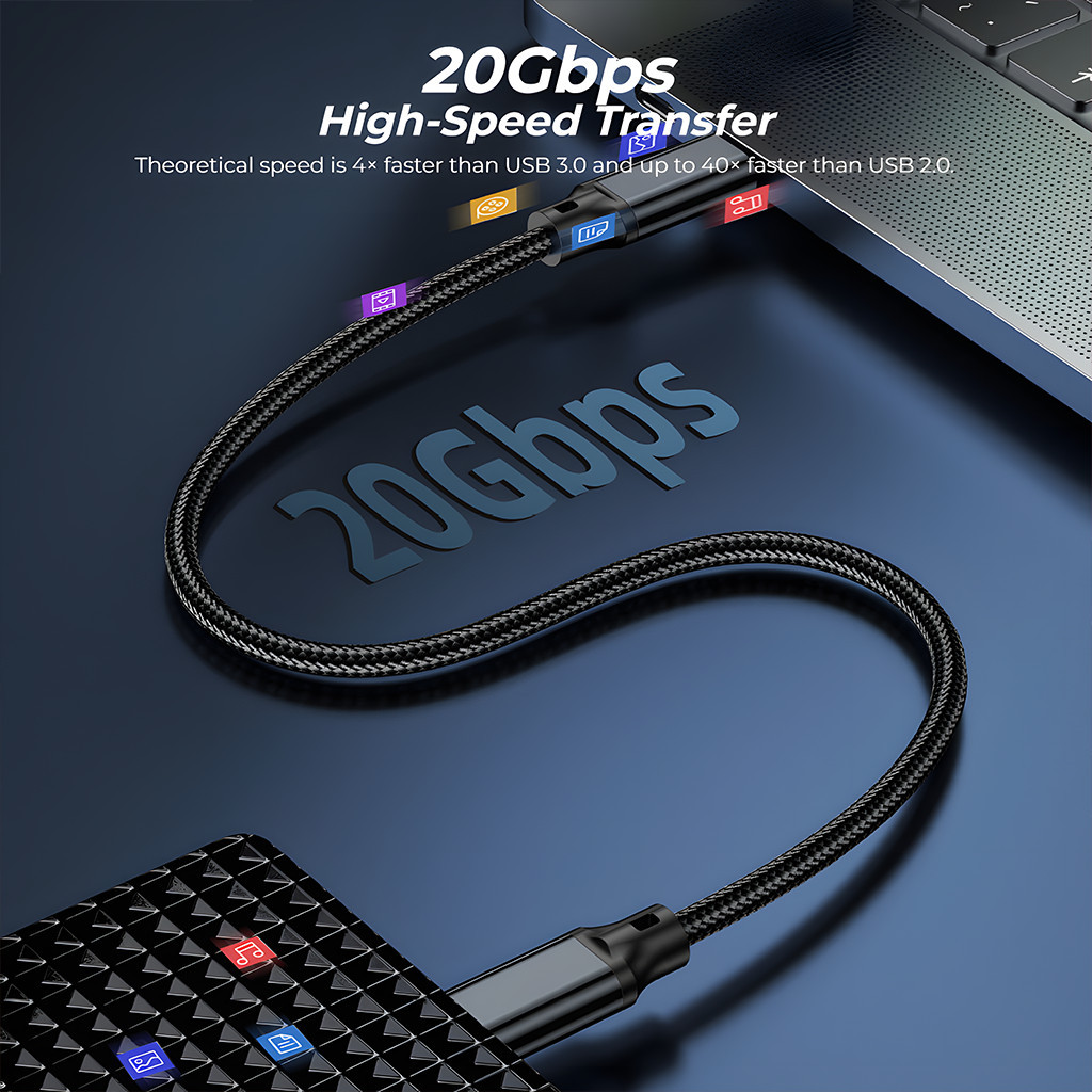 สาย USB-C USB 3.2 Gen2x2 20Gbps PD 240W สายถัก รองรับ DP Alt Mode ต่อจอ 8K ชาร์จเร็ว โอนข้อม ูลไว Type-C