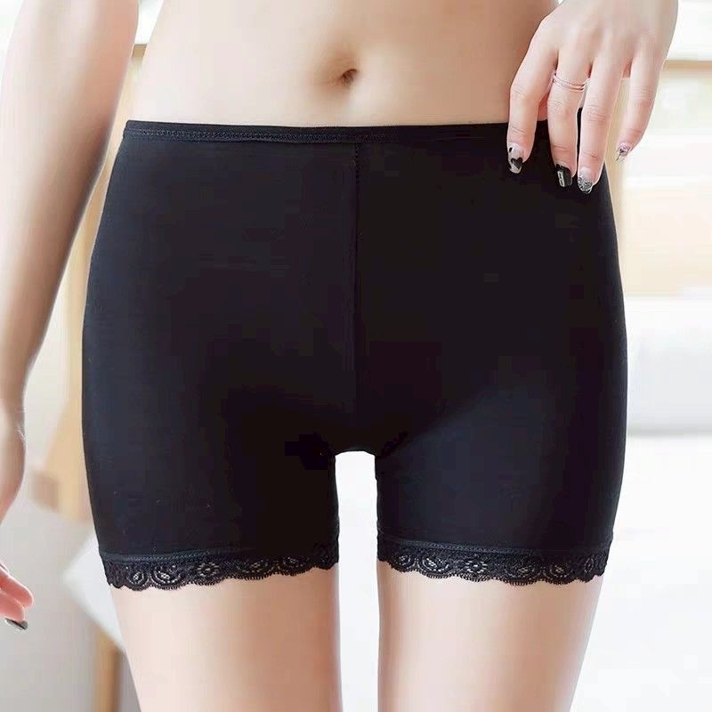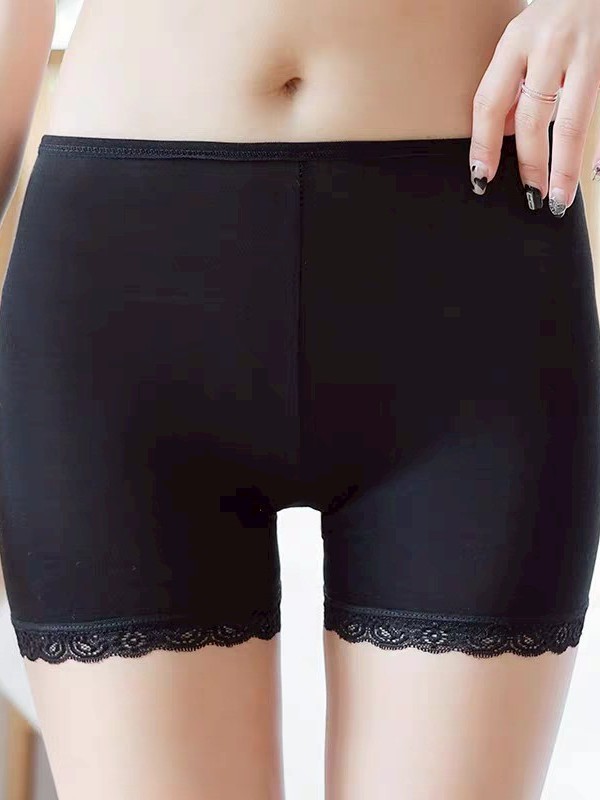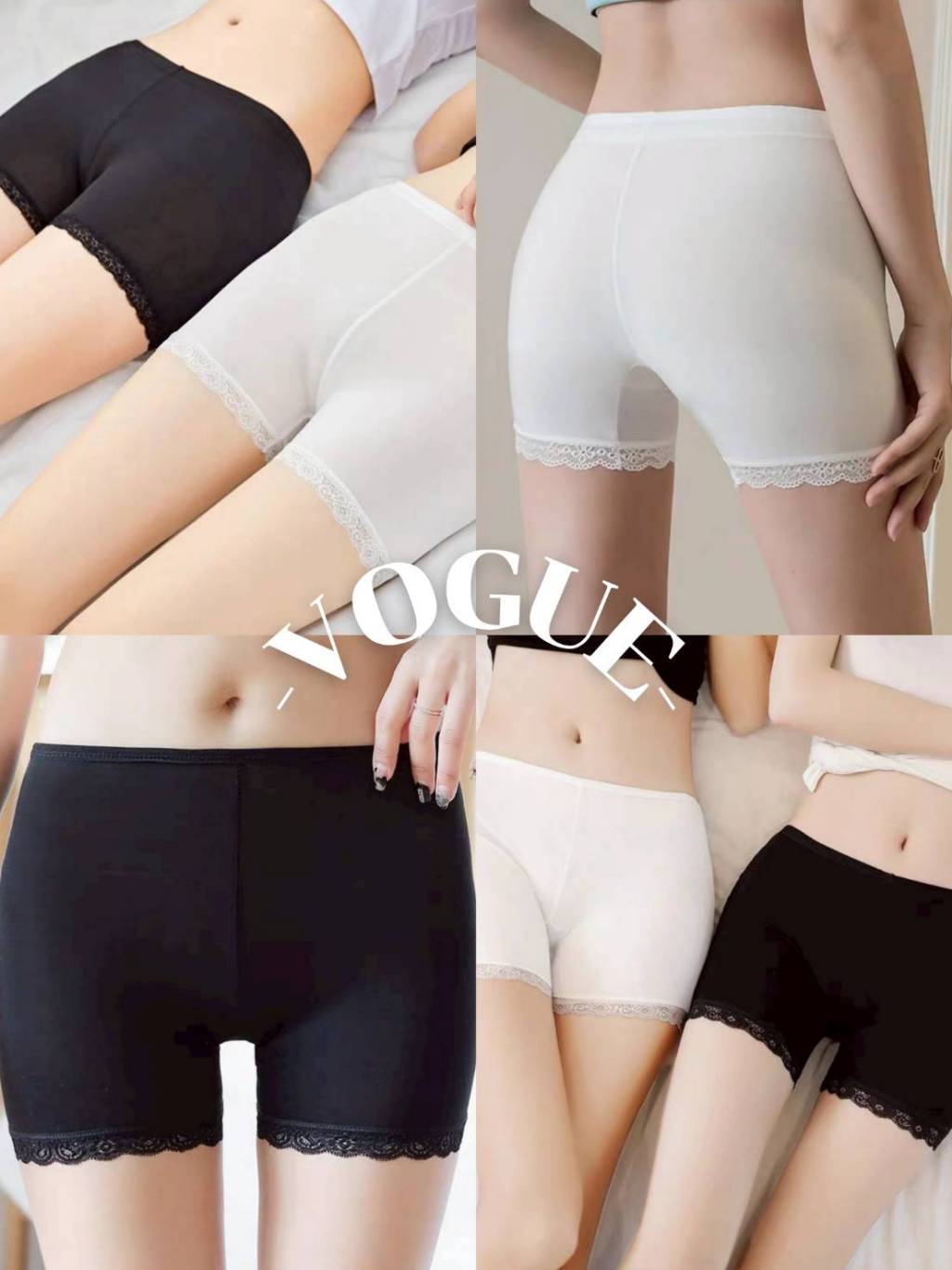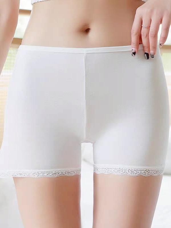 Vogue🌟พร้อมส่ง🌟 กางเกงขาสั้น ซับใน ผ ้าบางสีพื้น ขอบลูกไม้ (KK7085)