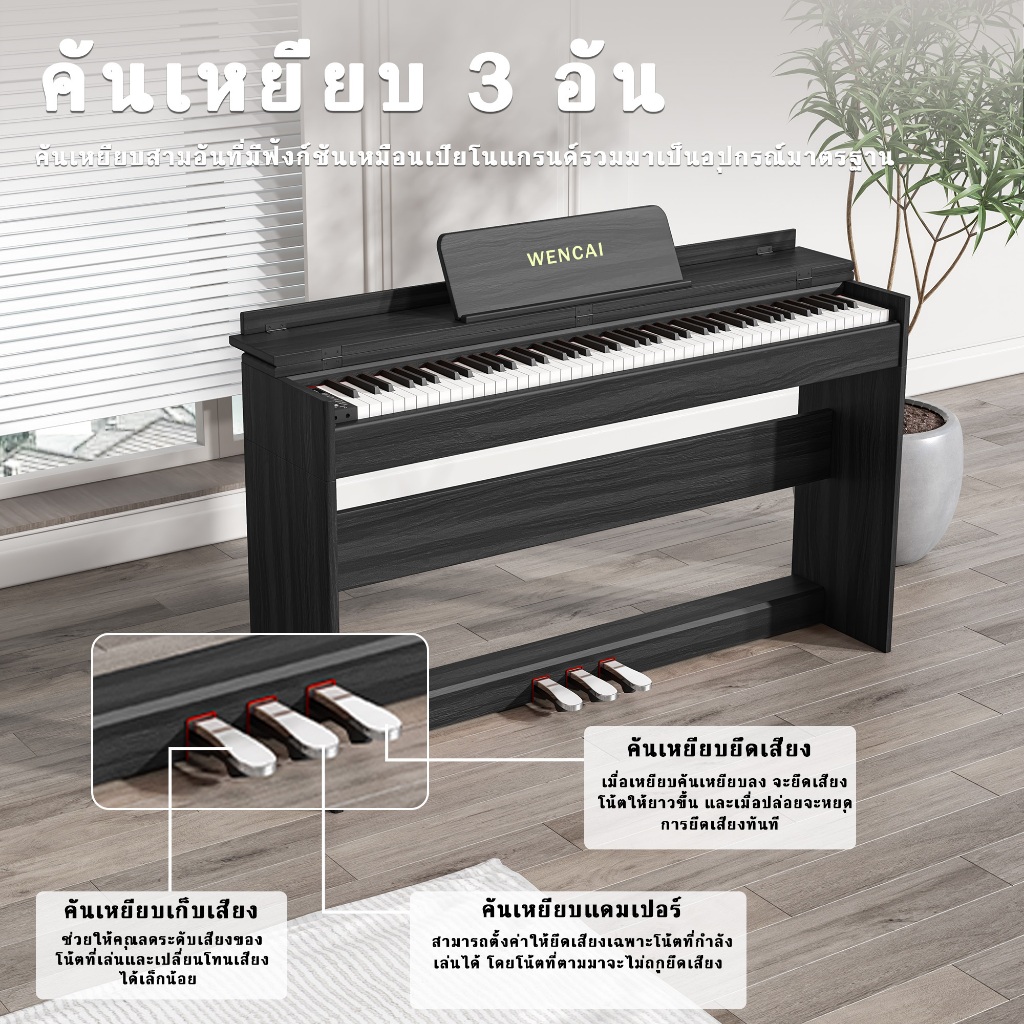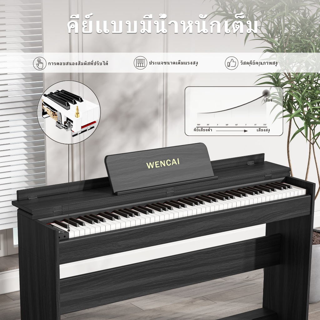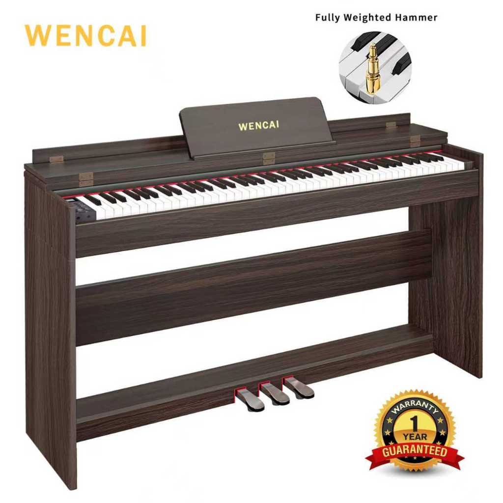 เหวินไช เปียโนดิจิตอล88คีย์ตรงน้ําหนักเต็มเปียโนไฟฟ้าไม้คลาสสิก88คีย์ค้อนการกระทํา,คีย์บอร์ดเปียโนอิเล็กทรอนิกส์สําหรับผู้เริ่มต้น,มืออาชีพ,Triple Pedal