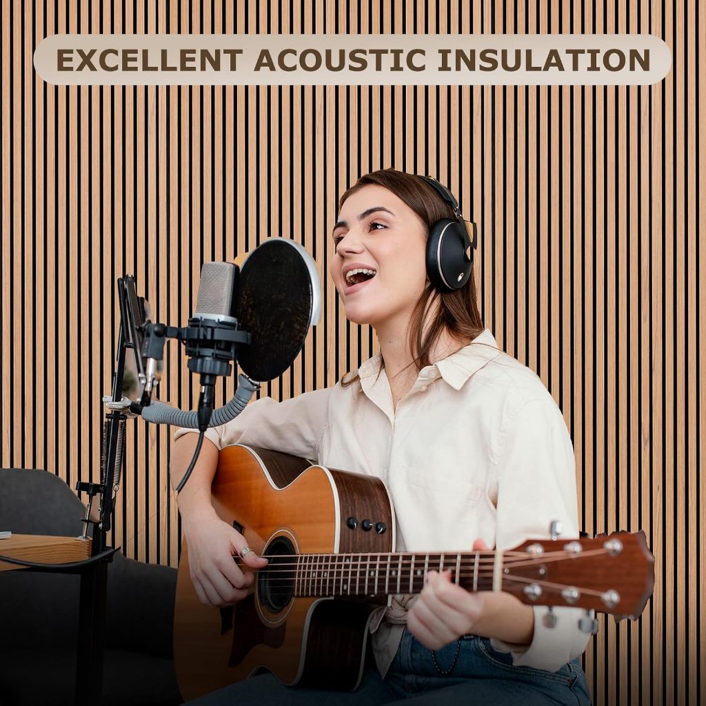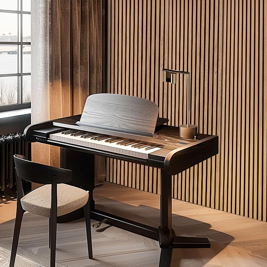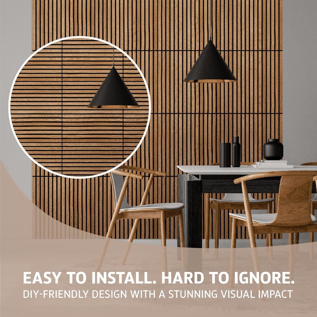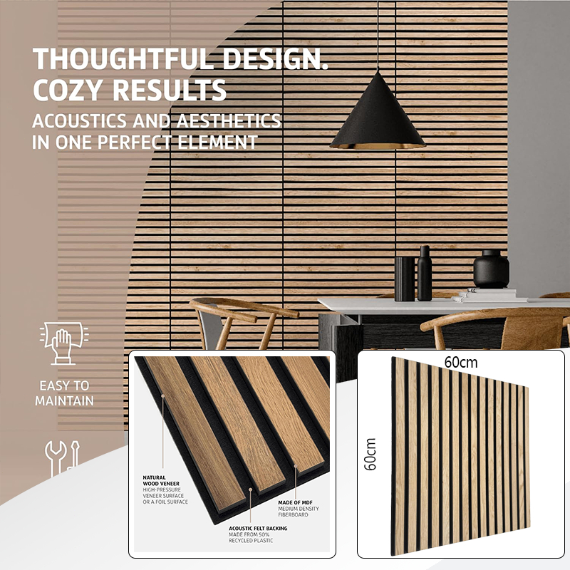 60x60 ซม. ไม้วีเนียร์ แผงอะคูสติก - กระเบื้องผนังกันเสียงแบบมีกาวในตัวพร้อมการออกแบบร่องแนวตั้ง