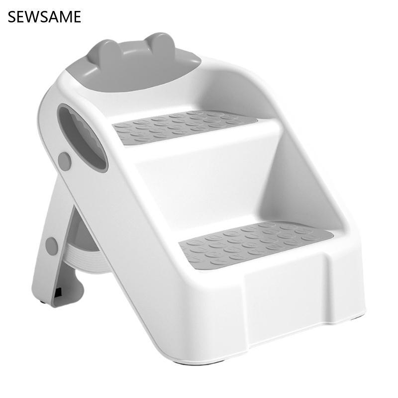 แสดง สตูลขั้นบันไดเด็กวัยหัดเดินก้าวสตูลพับบันไดเด็กสตูลผู้ช่วยป้องกันการลื่น 2 ขั้นตอนสตูลสําหรับห้องน้ําง่าย