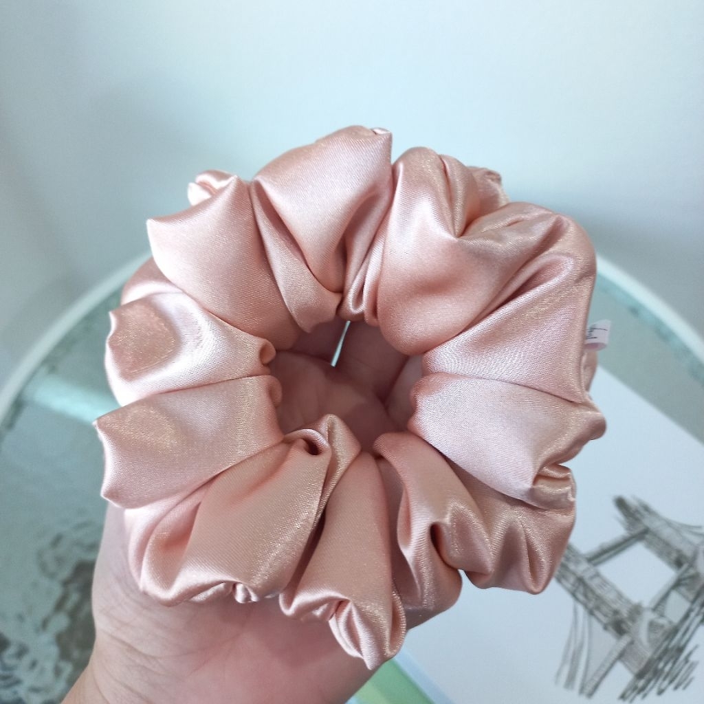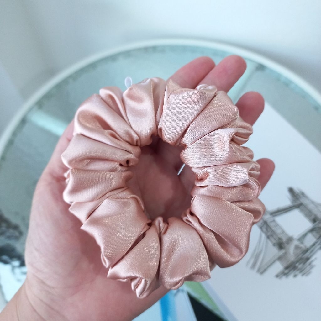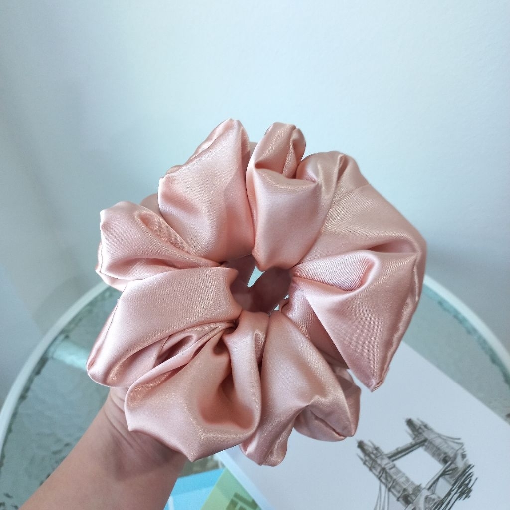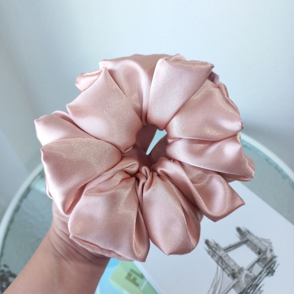 Wraps.s Scrunchies ผ้าซาติน สีโรสโกลด์และชมพู มี 5 ไซส์ ยางรัดผม ยางมัดผม สครันชี่ พร้อมส่ง