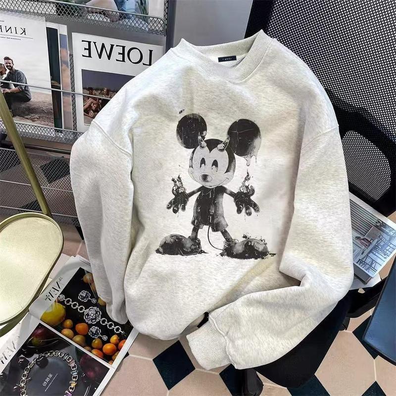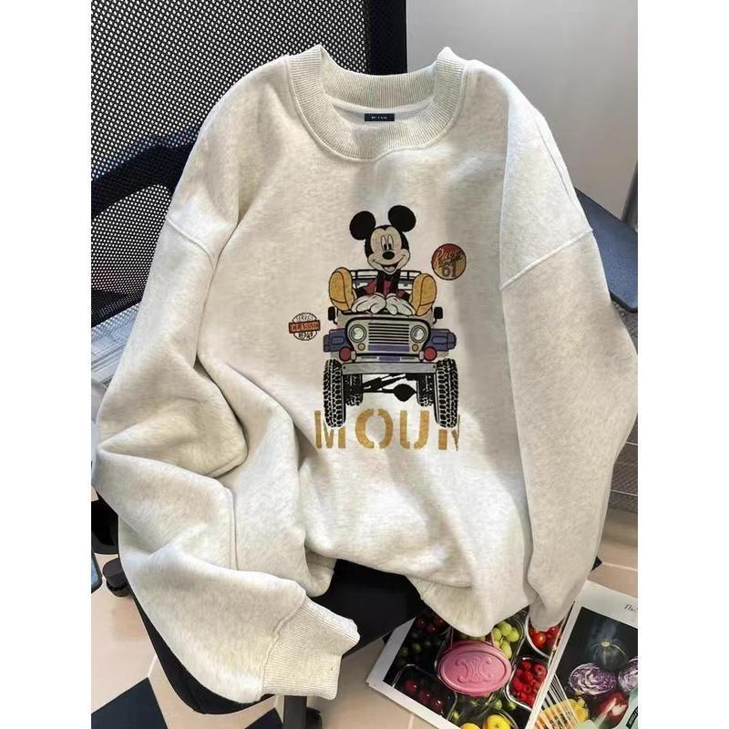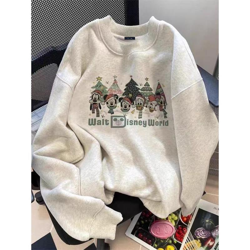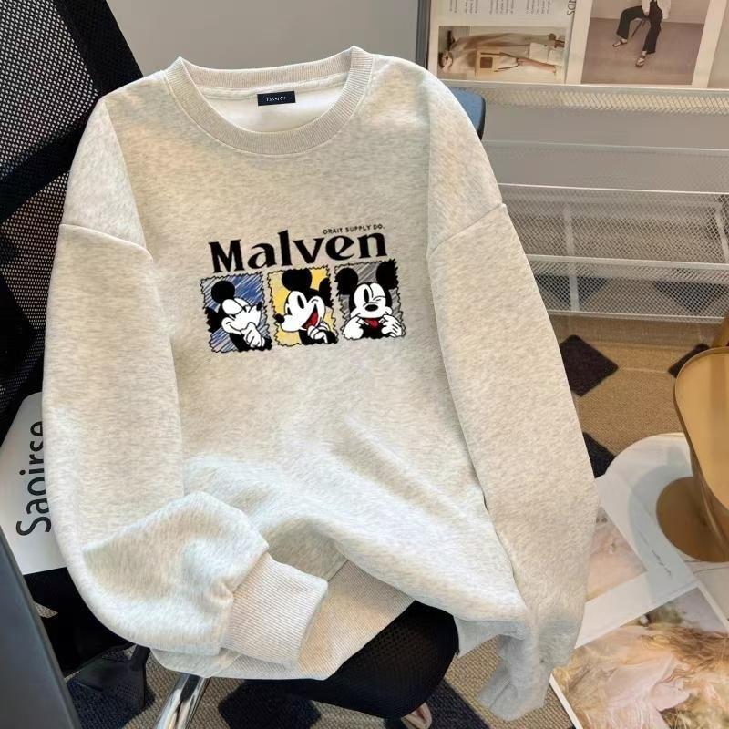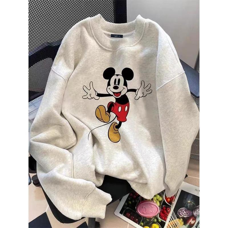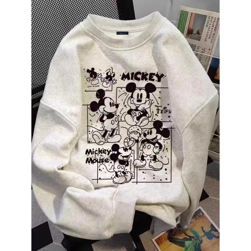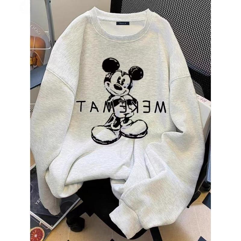 (จัดส่งตลอด 24 ชั่วโมง)Chompoo-Fashion ทันสมัย เกาหลี YLWY0223 Oversize เสื้อคอกลม เสื้อแขนยาว หลวม วินเทจเสื้อยืด เสื้อ