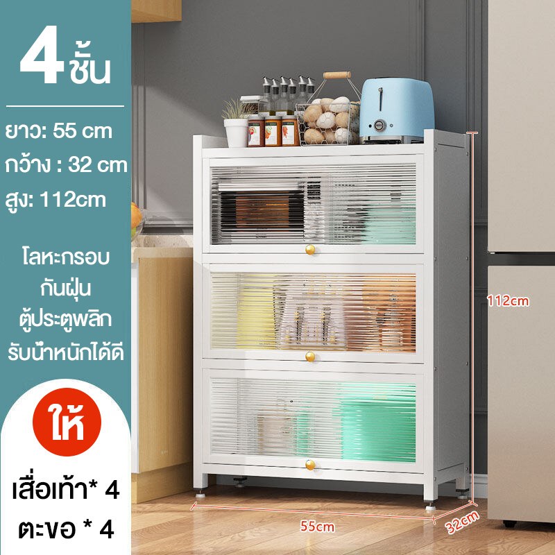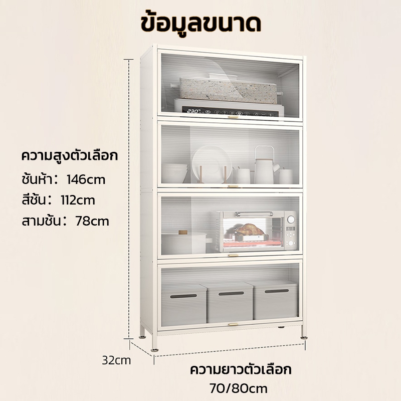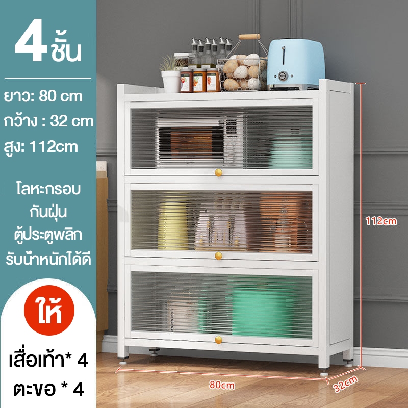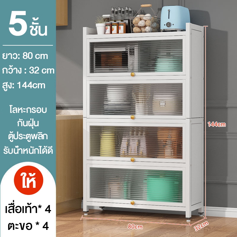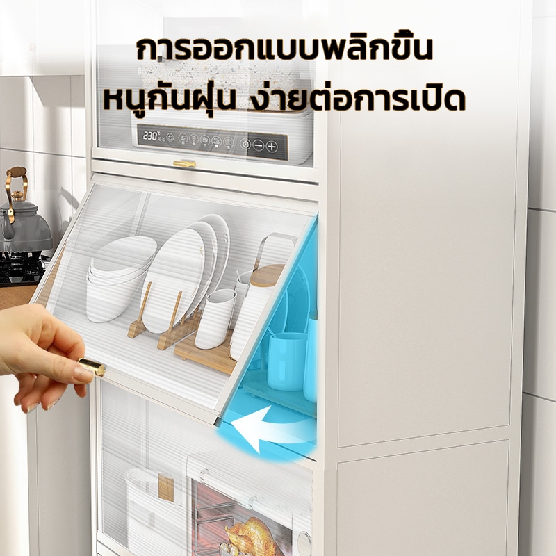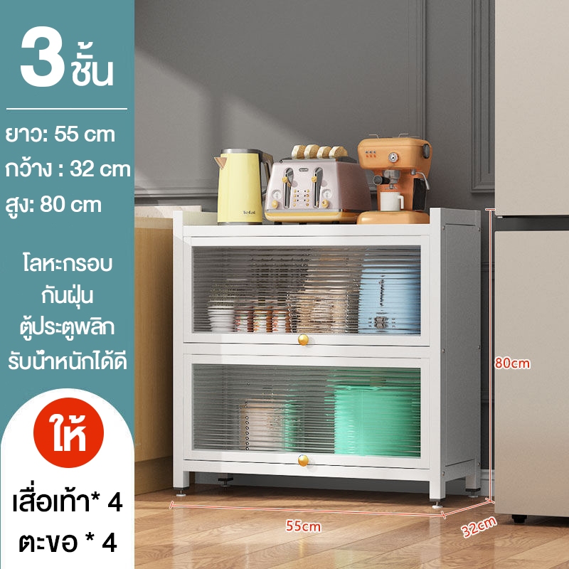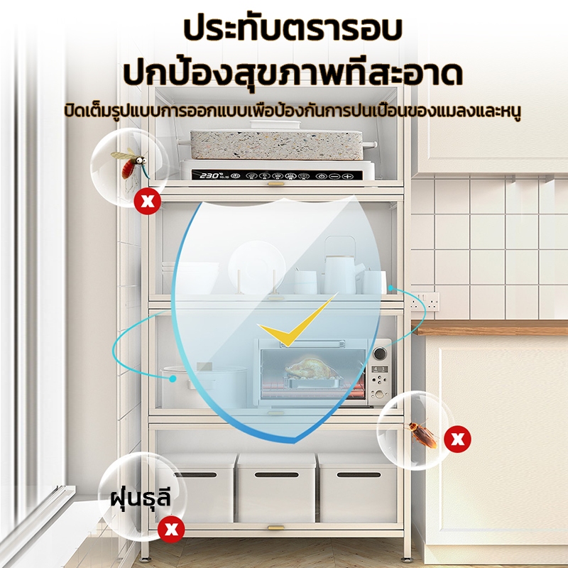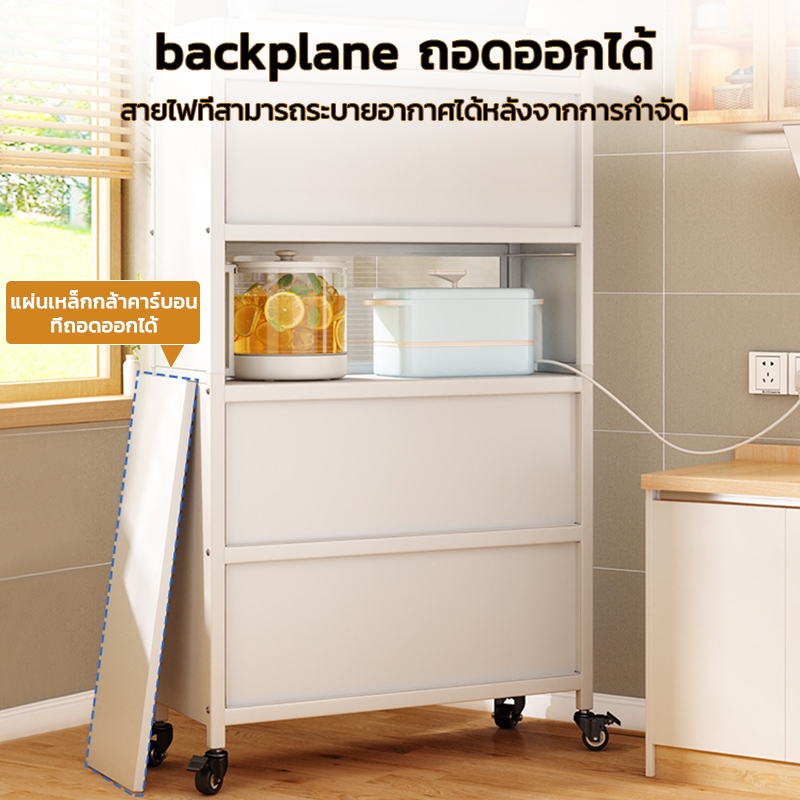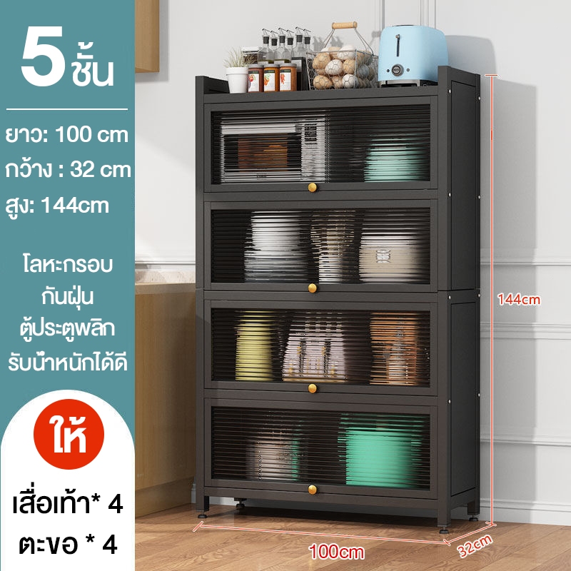 ตู้เก็บจานชาม ชั้นวางของ ชั้นวางของในห้องครัว ตู้เก็บไมโครเวฟ 3/4/5ชั้น พลิกการออกแบบประตูตู้