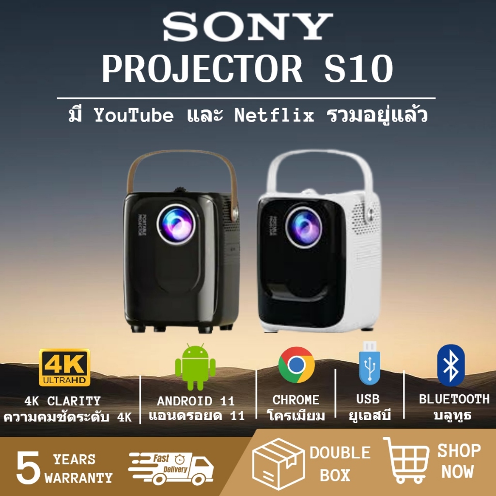 SONY S10 PRO โปรเจคเตอร์ ⭐4K FULL HD รองรับ WiFi/Bluetooth,เหมาะสำหรับใช้ในบ้าน/กลางแจ้ง