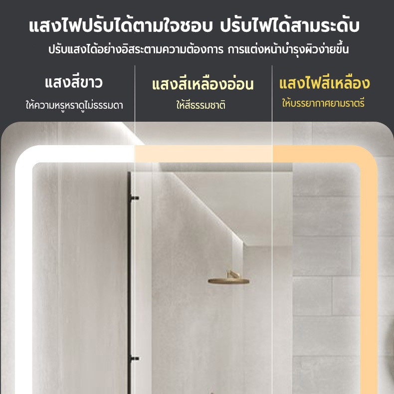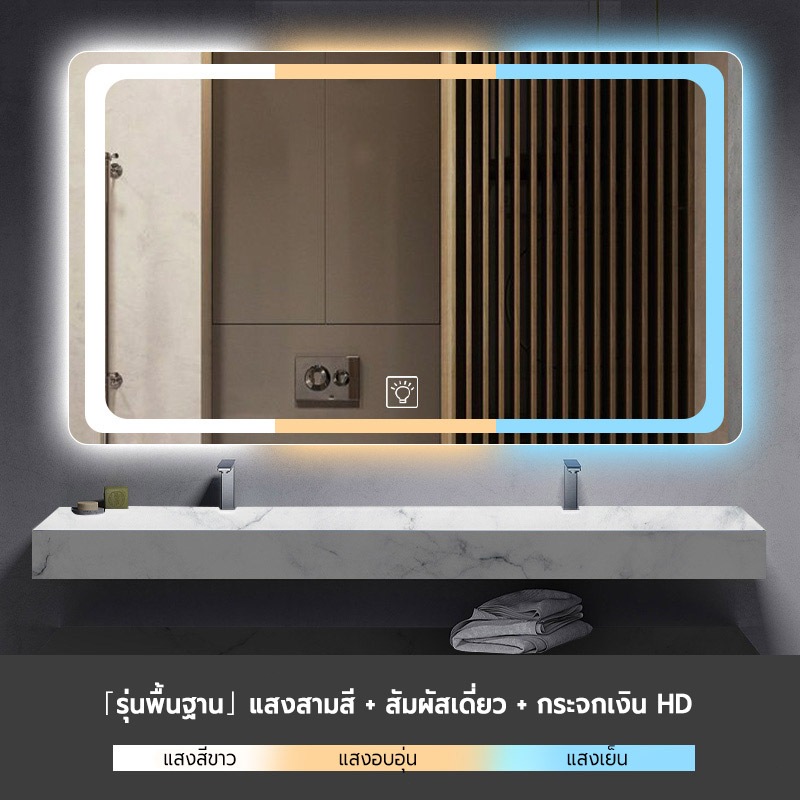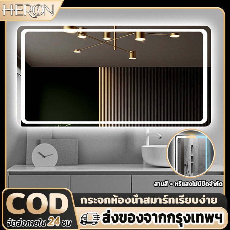 HERON กระจกติดผนัง กระจกห้องน้ําอัจฉริยะพร้อมไฟ LED กระจกแต่งหน้าแขวนสามสีพร้อมหรี่แสงได้