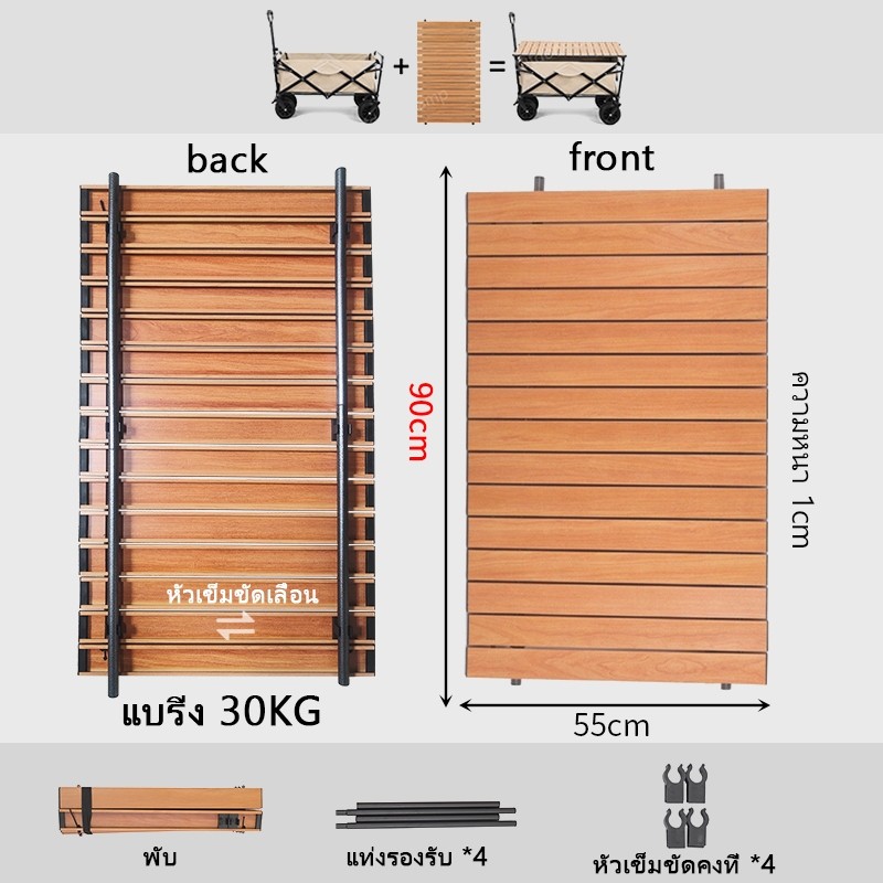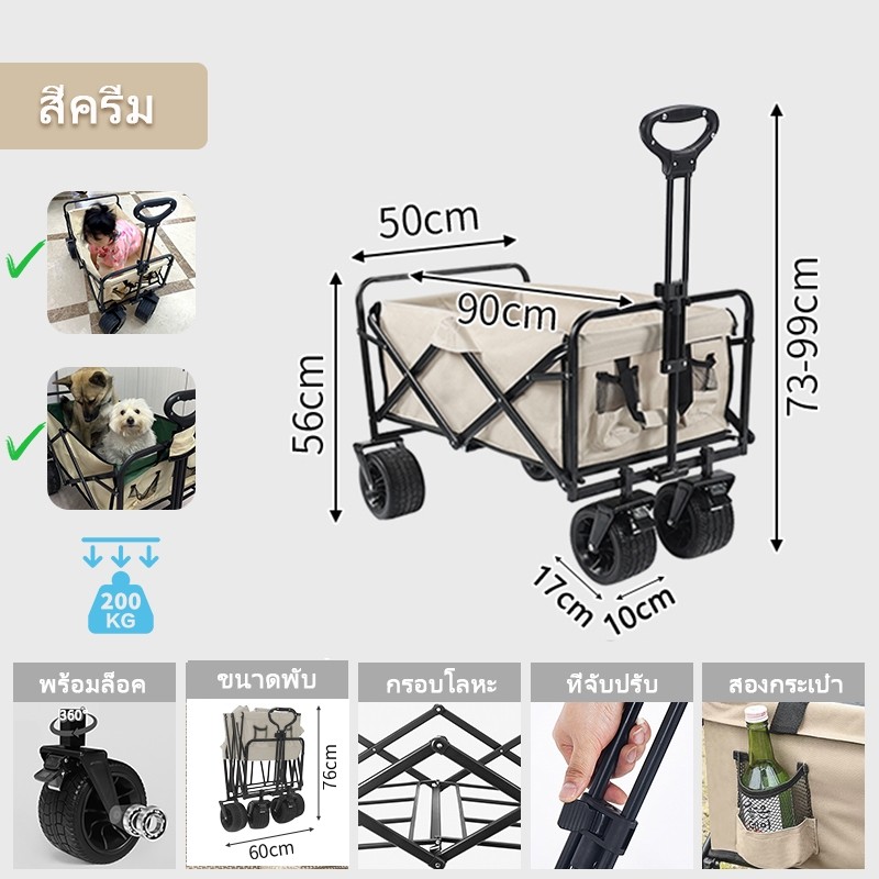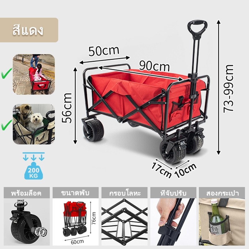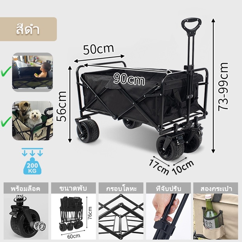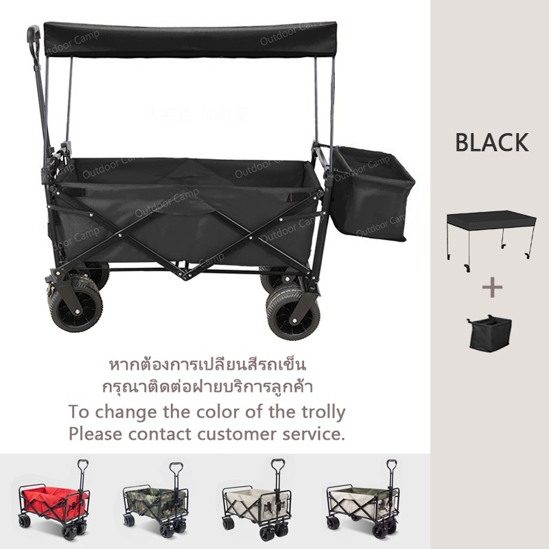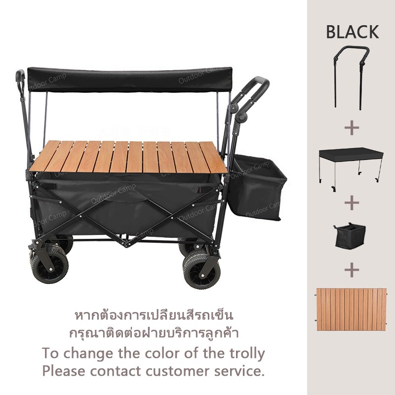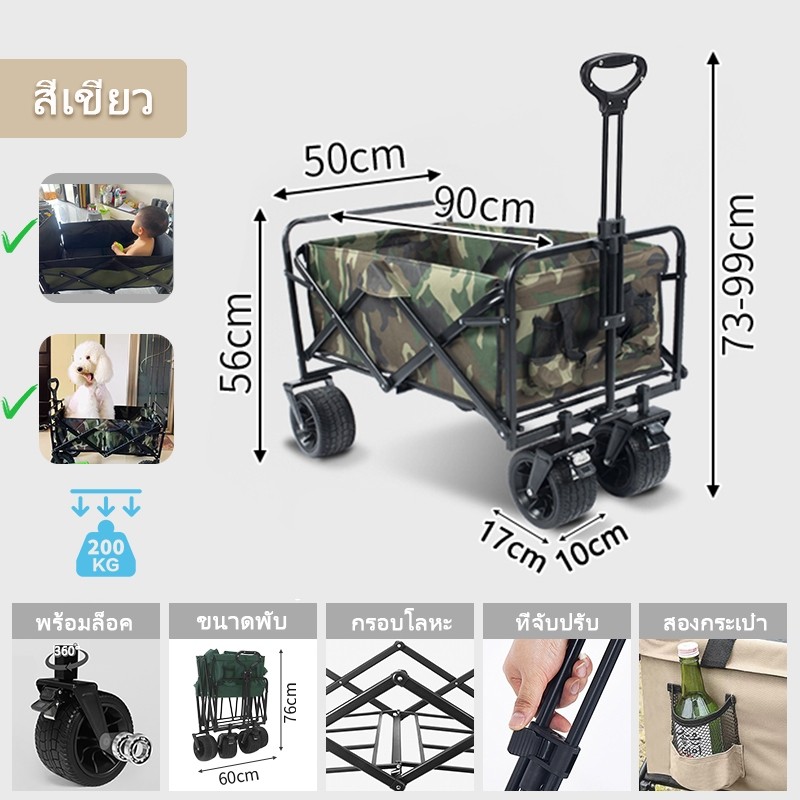 🎉ข้อเสนอพิเศษรถเข็นแคมป์ปิ้ง โต๊ะแคมป์ปิ้งพับได้ รถเข็นพกพา รถเข็นของของ รถเข็นแคมปิ้ง Wagon Trolleyล้อโต 8นิ้ว ความจุข