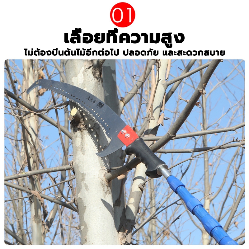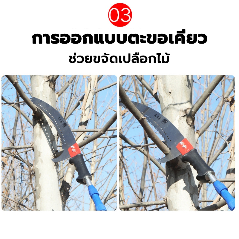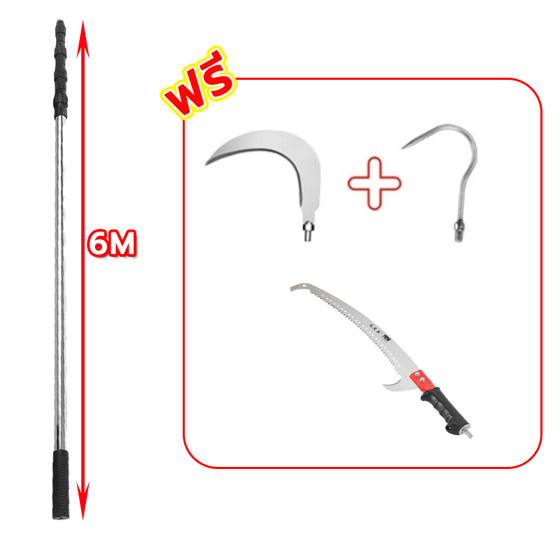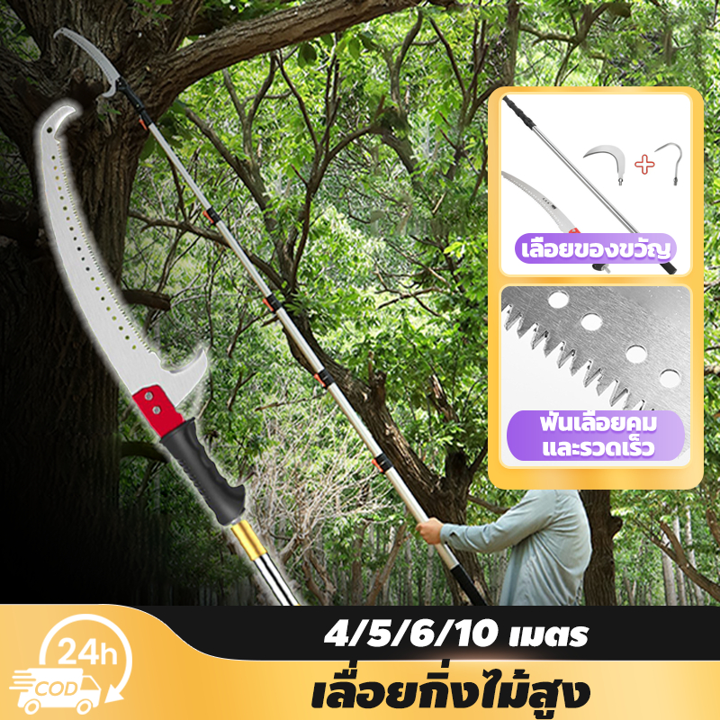 grenebo เลื่อยกิ่งสูง ยืดได้ 4/5/6/10m ใบเหล็กนำเข้าSK5 ปลายโค้ง พกพาสะดวก สําหรับตัดกิ่งไม้ในสวนสูง