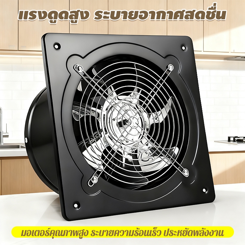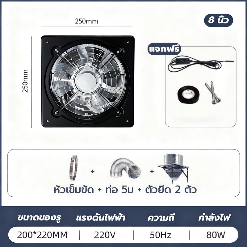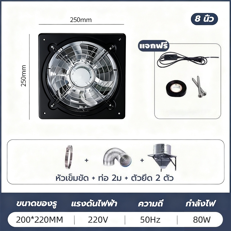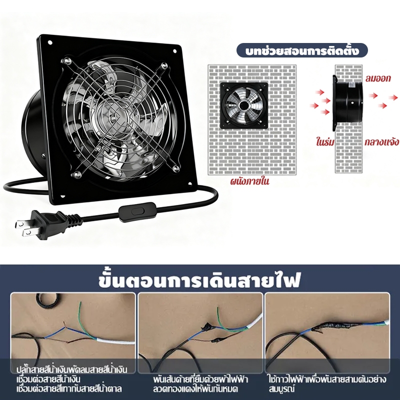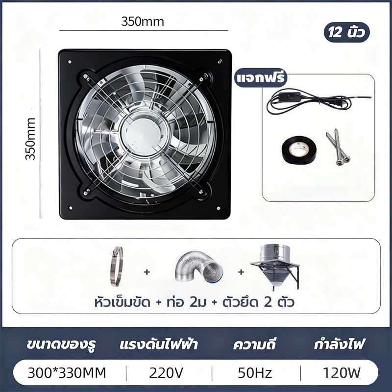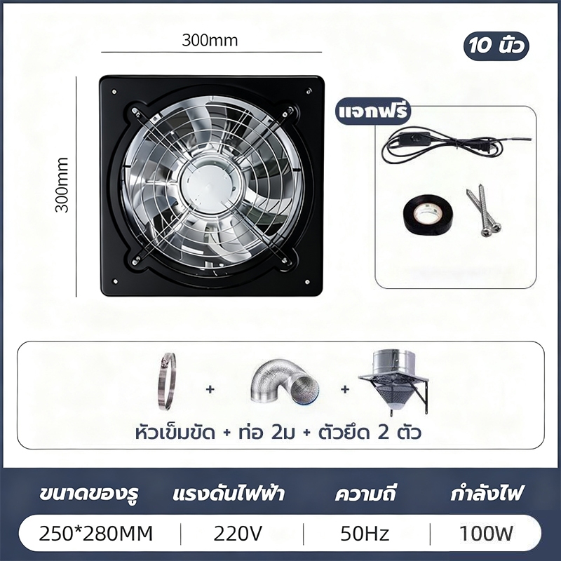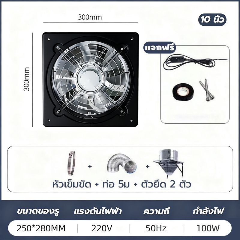 พัดลมระบายอากาศ พัดลมดูดอากาศ เครื่องดูดควัน1.5mเคเบิลพร้อมสวิตซ์ สแตนเลส6/8/10/12นิ้วพัดลมดูดอากาศในครัวบาร์บีคิวพลังลม