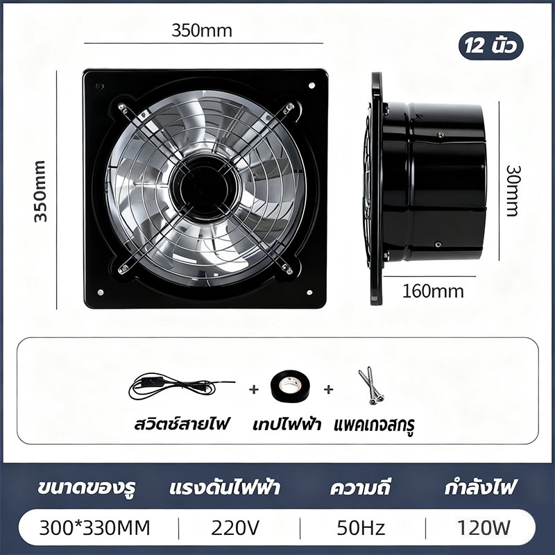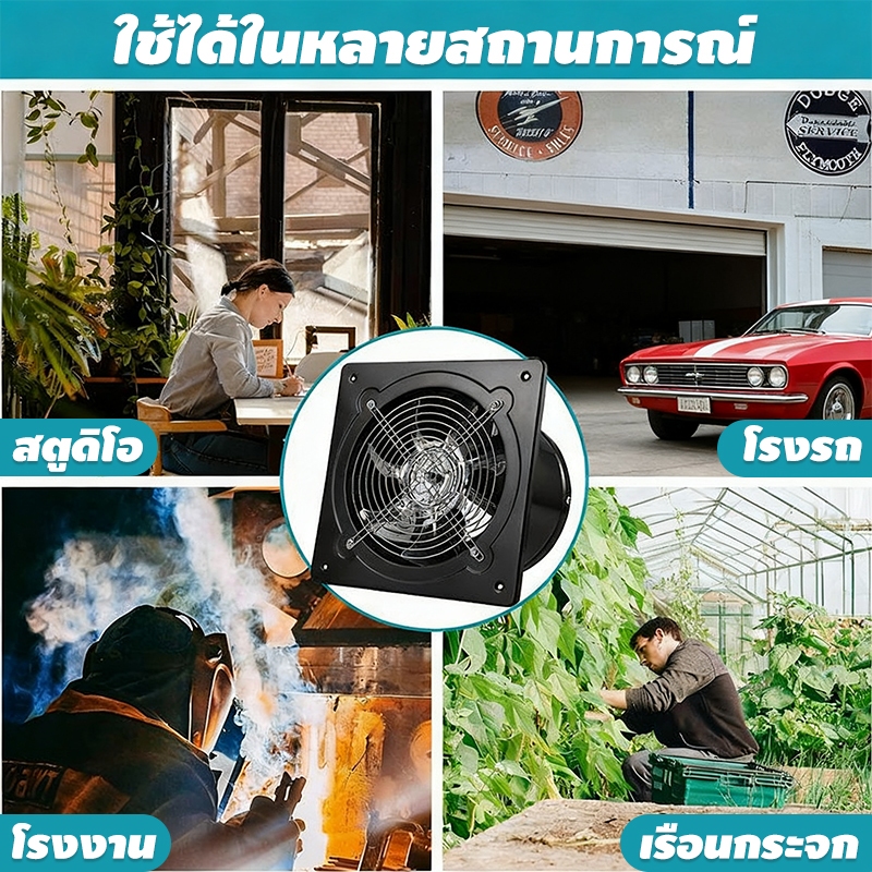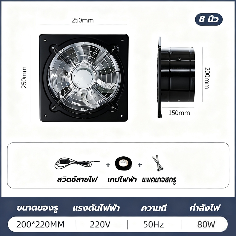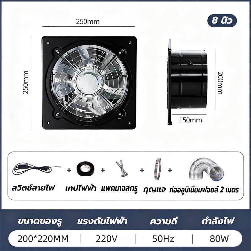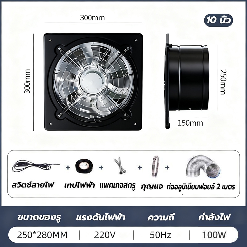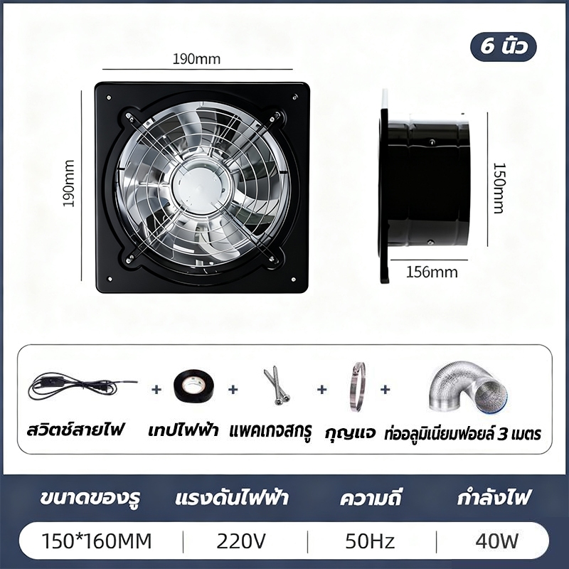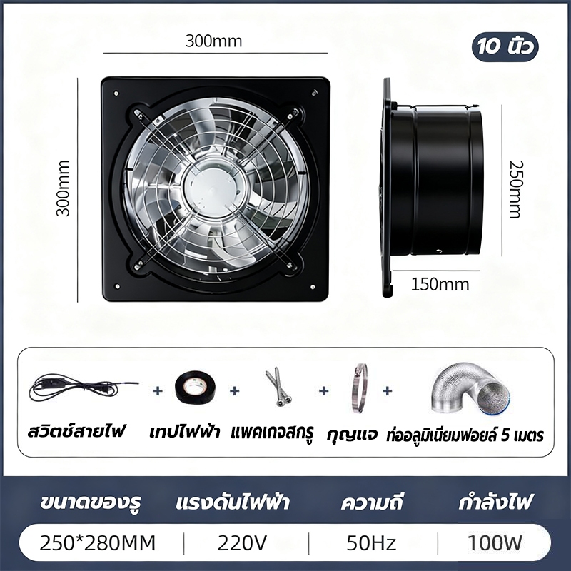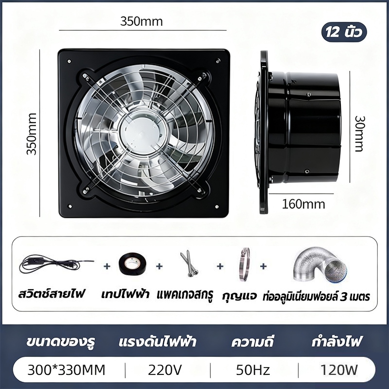 พัดลมระบายอากาศ พัดลมดูดอากาศ เครื่องดูดควัน1.5mเคเบิลพร้อมสวิตซ์ สแตนเลส6/8/10/12นิ้วพัดลมดูดอากาศในครัวบาร์บีคิวพลังลม