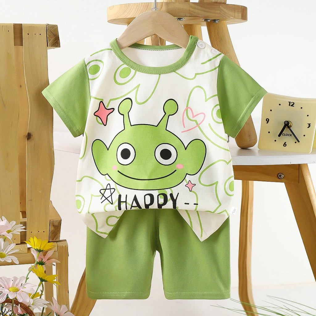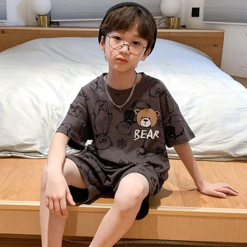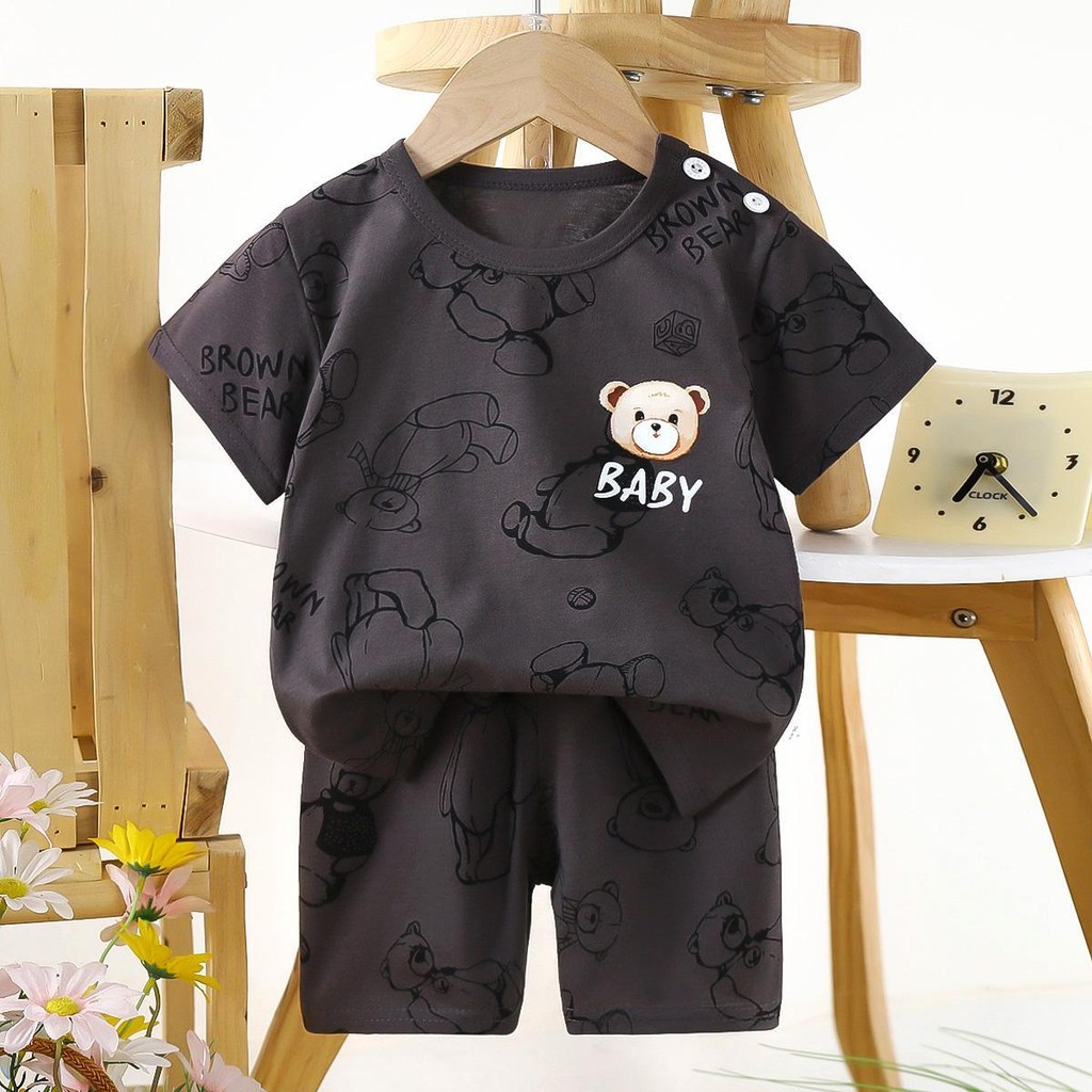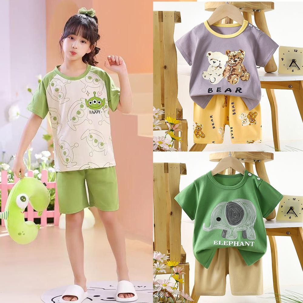 เด็กหญิง, เด็กผู้ชาย น่ารักชุดเซทเสื้อแขนสัน+กางเกงขาสั้น เซท 2 ชิ้น ชุดนอนเด็ก ผ้าบางๆใส่ สบาย ไซส์:73-120cm “DA-N”