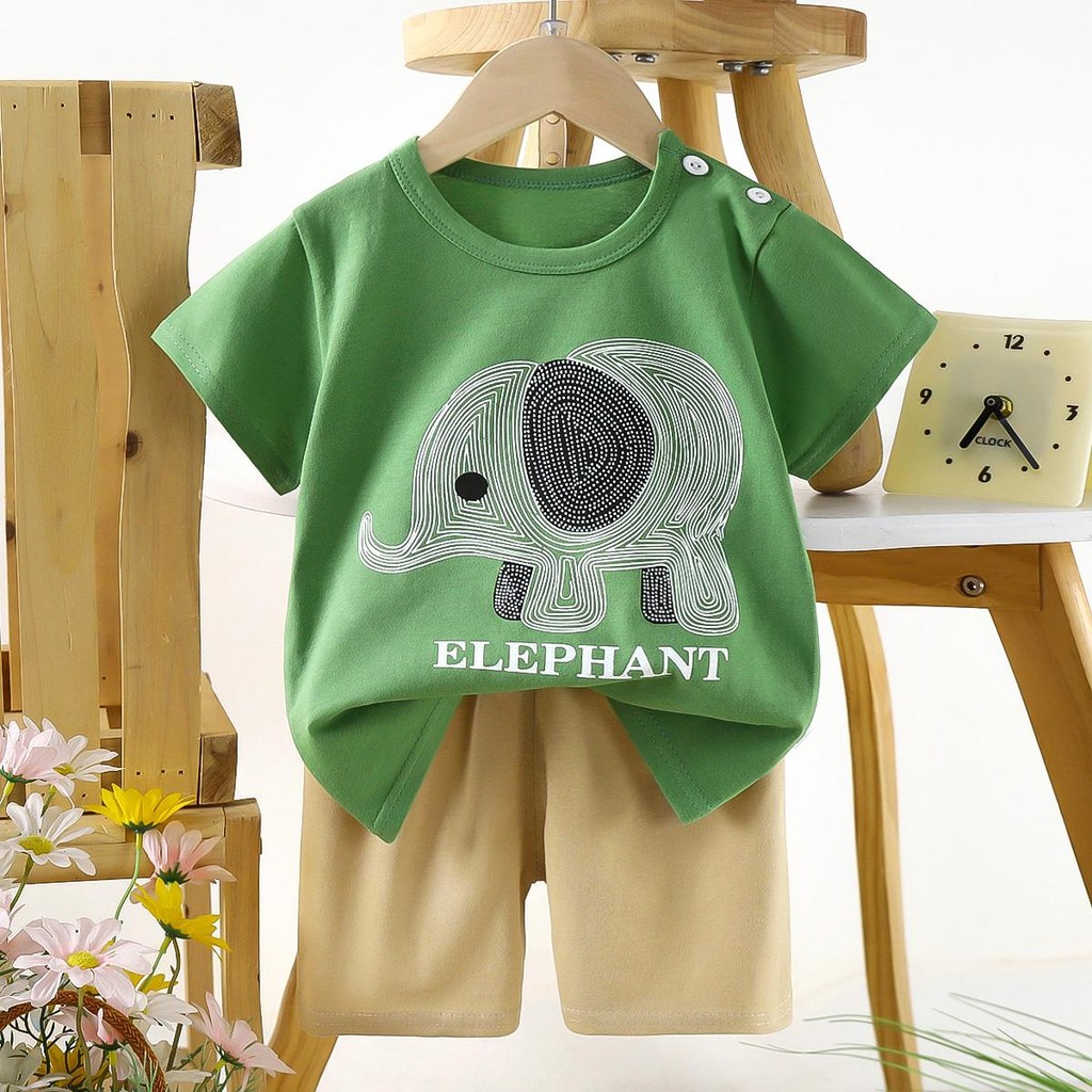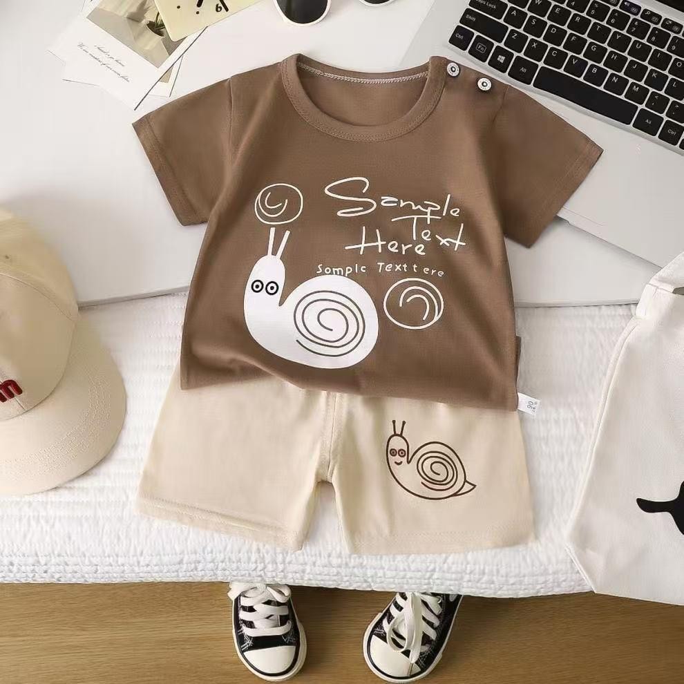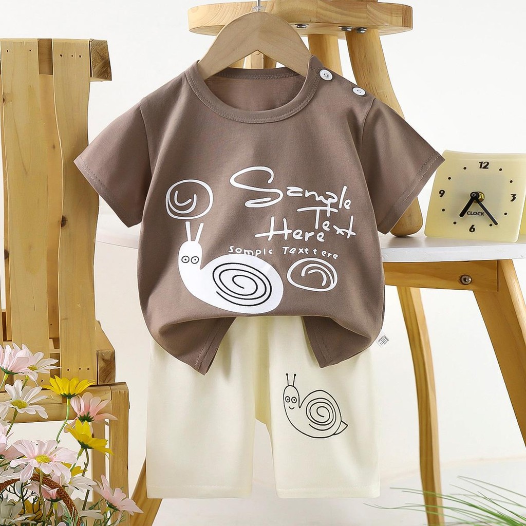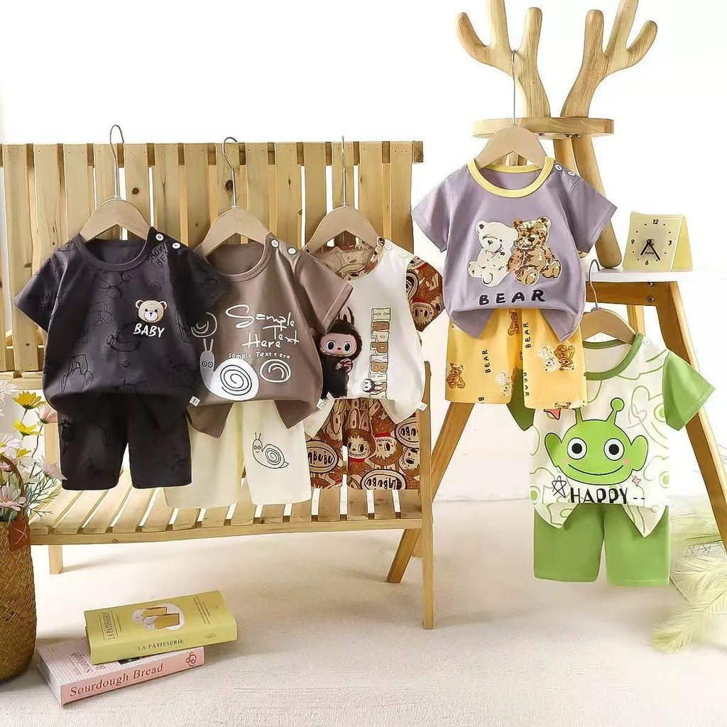 เด็กหญิง, เด็กผู้ชาย น่ารักชุดเซทเสื้อแขนสัน+กางเกงขาสั้น เซท 2 ชิ้น ชุดนอนเด็ก ผ้าบางๆใส่ สบาย ไซส์:73-120cm “DA-N”