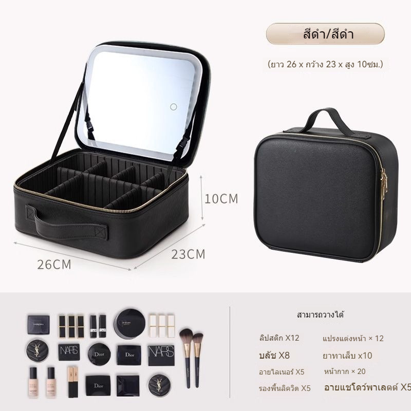 🔥🔥🔥【ขายตรงจากโรงงาน】กระเป๋าเครื่องสำอางพร้อมกระจกและไฟ LED กล่องเก็บเครื่องสำอางแบบพกพาและอเนกประสงค์ราคาสุดคุ้ม