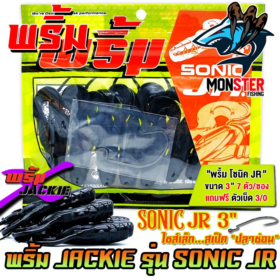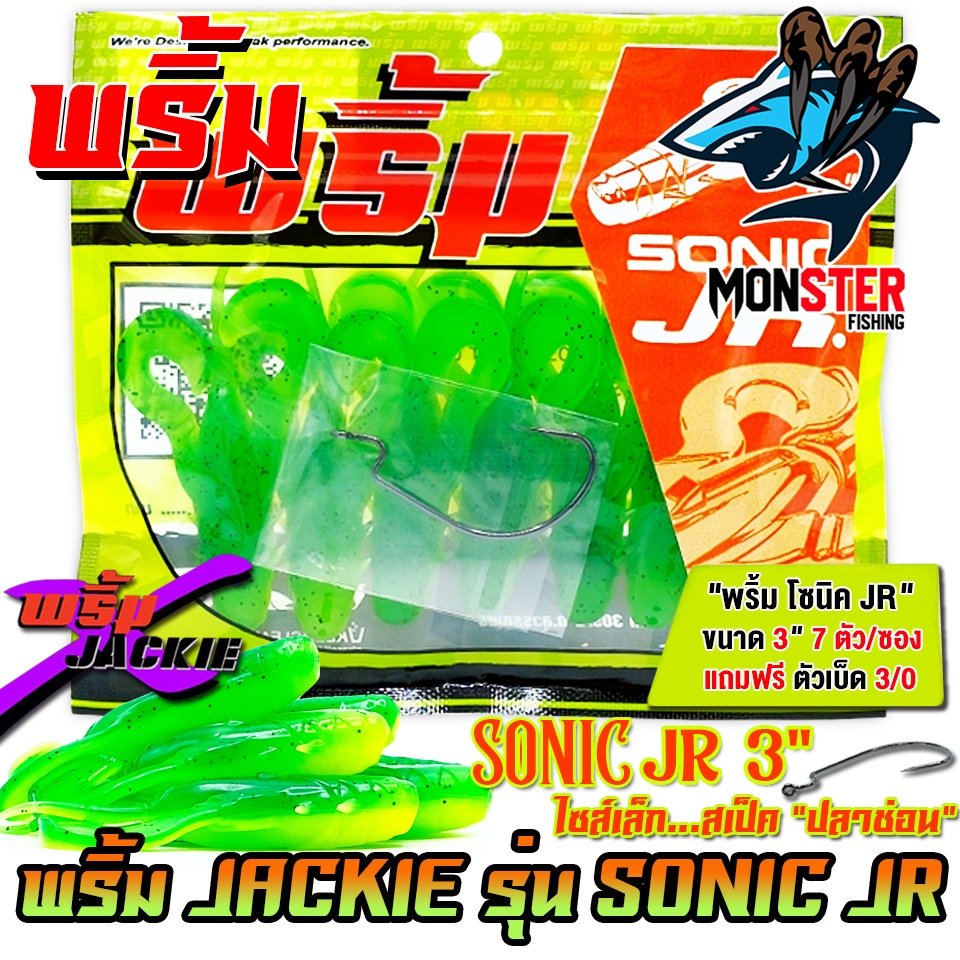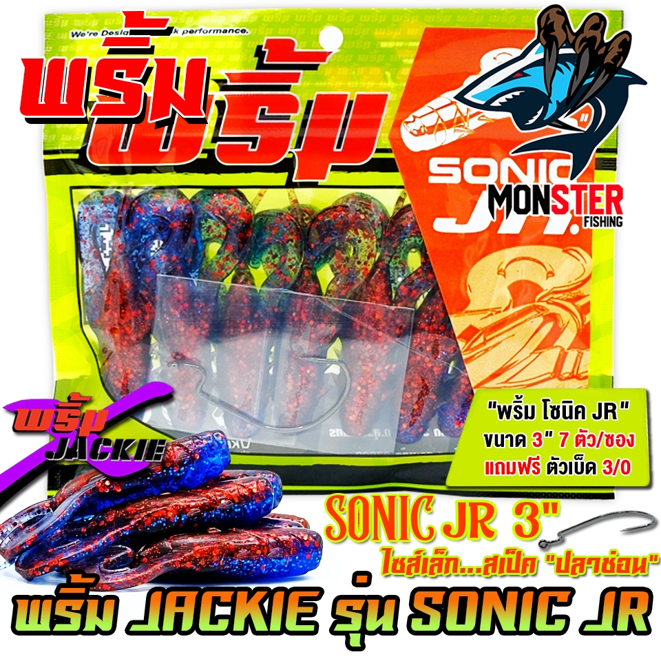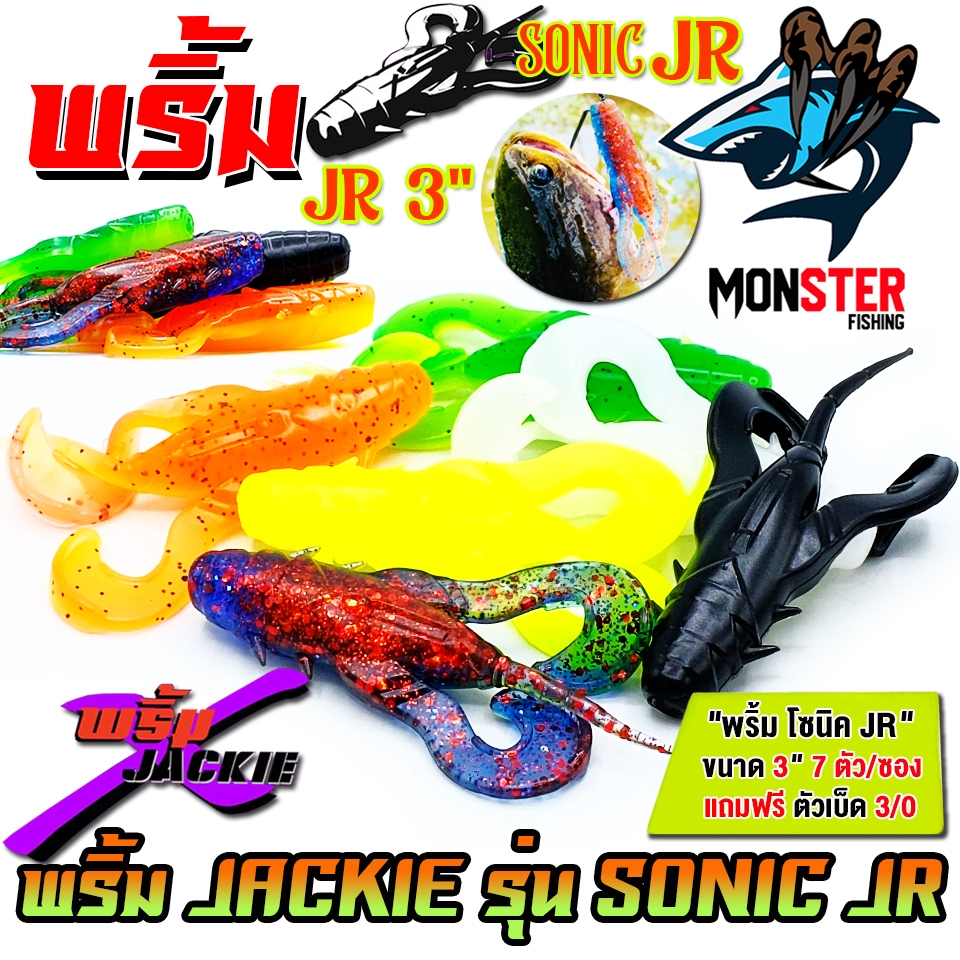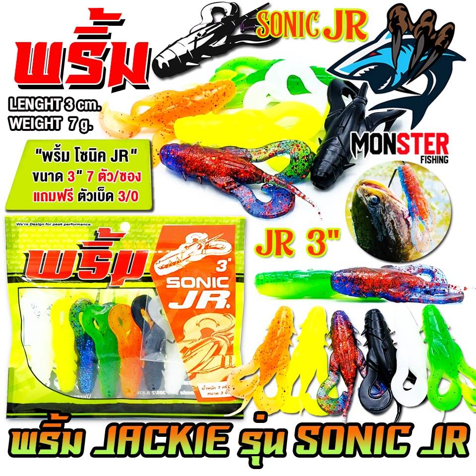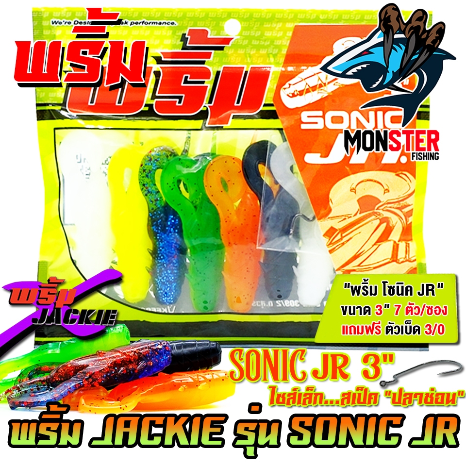 เหยื่อตกปลา เหยื่อยาง พริ้ม X JACKIE รุ่น SONIC JR โซนิค จิ๋ว by พริ้ม ลัวร์ (1 ซองมี 7 ตัว เบ็ดฟรี 1 ดวง)