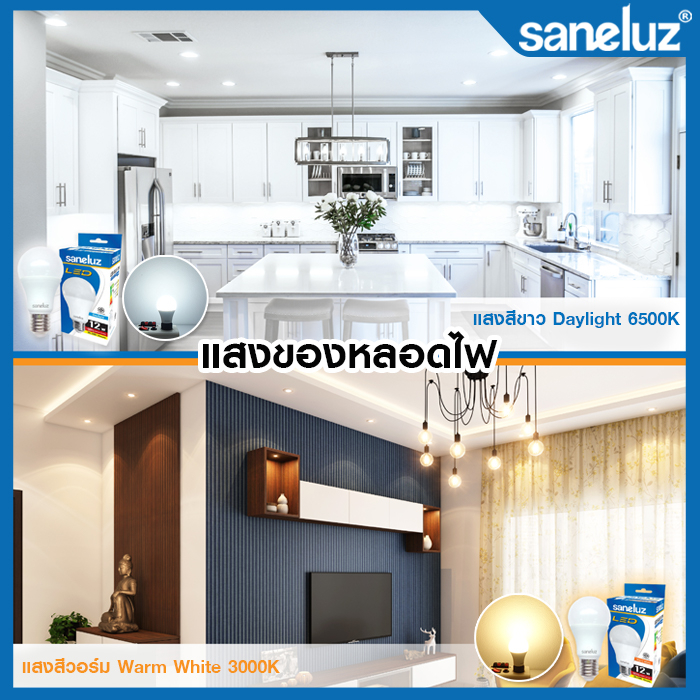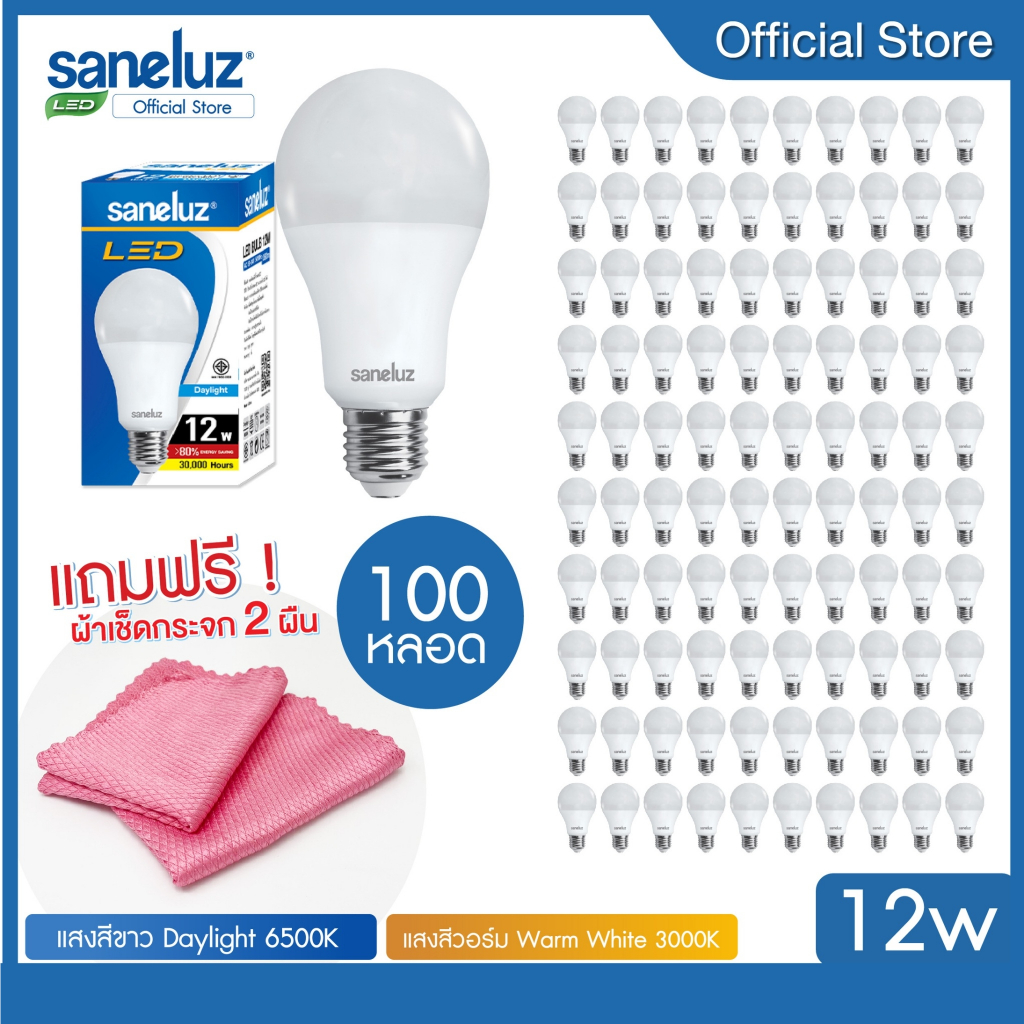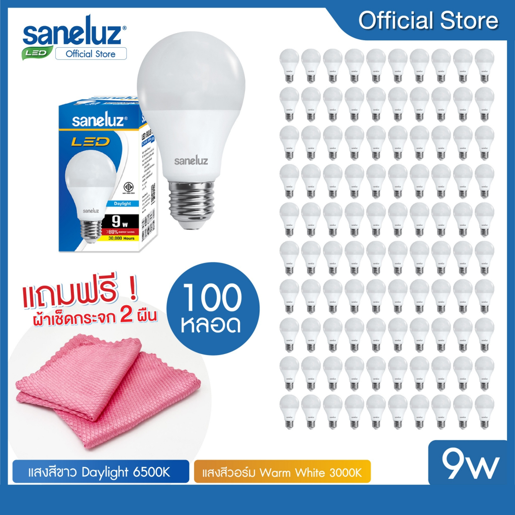 Saneluz 100 หลอด ไฟ LED 3W 5W 7W 9W 12W 14W 16W 18W Bulb ขั้วเกลียวE27 แสงขาว 6500K แสงวอร์ม 3000K ใช้งานไฟบ้าน 220V led