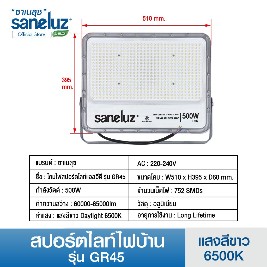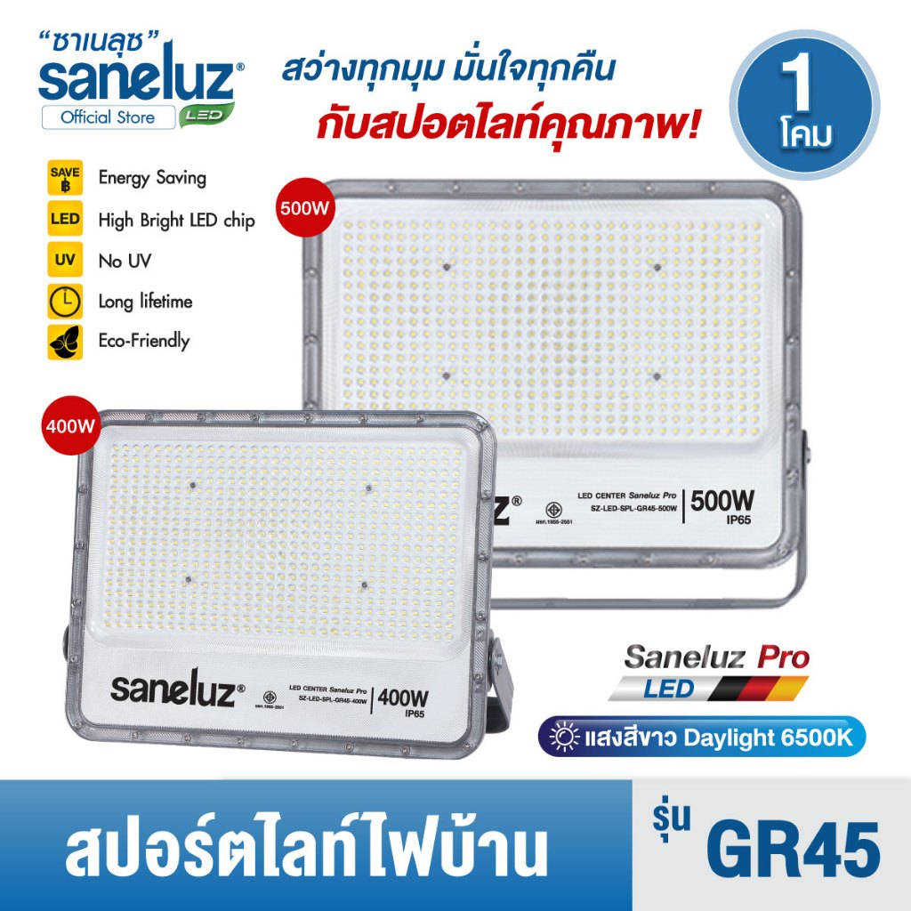 Saneluz NEW สปอร์ตไลท์ไฟบ้าน 400W 500W AC220V รุ่นGR45 LED แสงสีขาว โคมใหญ่ สว่างสุดๆ Spotlight Floodlight led